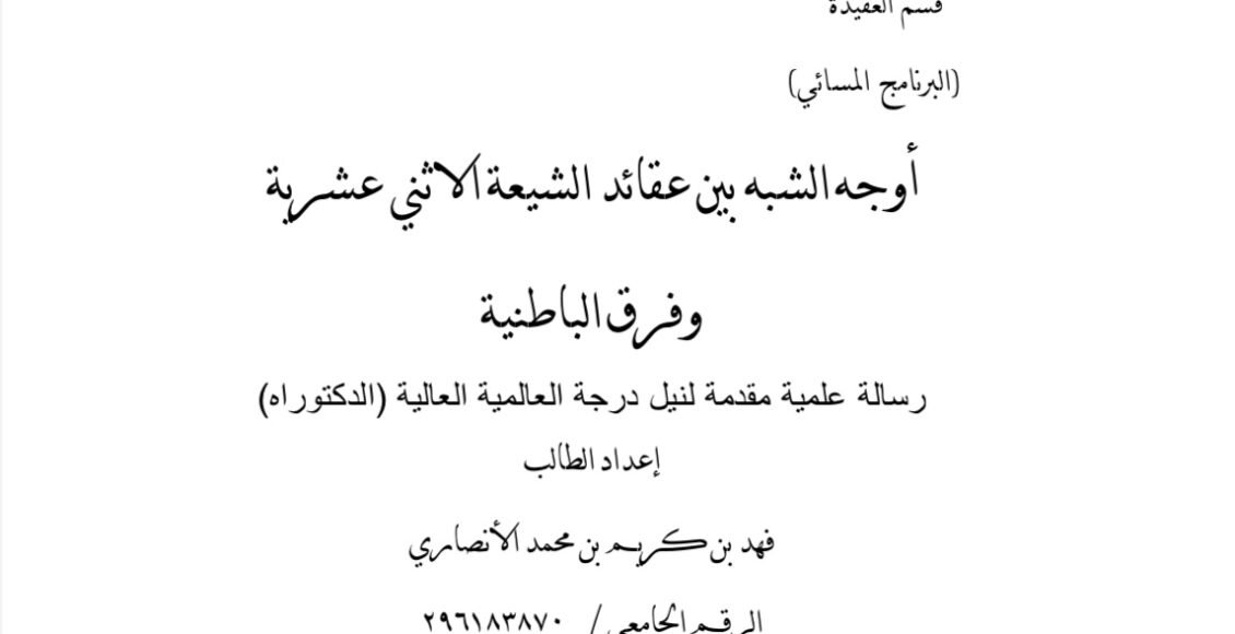 Screenshot كتب الرد على الشيعة أوجه الشبه بين معتقد الاثني عشرية وفرق الباطنية للطالب فهد بن كريم الأنصاري 1 بواسطة حوارت وإالزامات في أكتوبر 14, 2024 0 شارك FacebookTwitterGoogle+ReddItWhatsAppPinterestالبريد الإلكتروني أوجه الشبه بين معتقد الاثني عشرية وفرق الباطنية للطالب فهد بن كريم الأنصاري 1 لتحميل الكتاب اضغط هنا قناة اليوتيوب 0 شارك FacebookTwitterGoogle+ReddItWhatsAppPinterestالبريد الإلكتروني