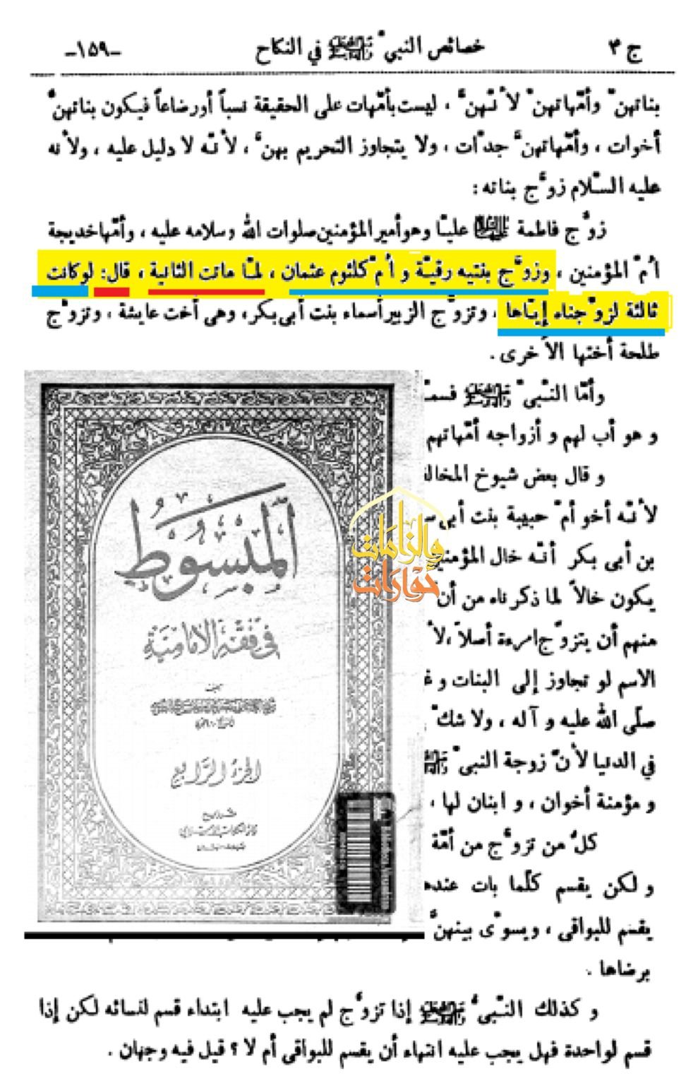 ويقول شيخهم الطوسي في كتاب المبسوط في فقة الإمامية ج4 ص159: