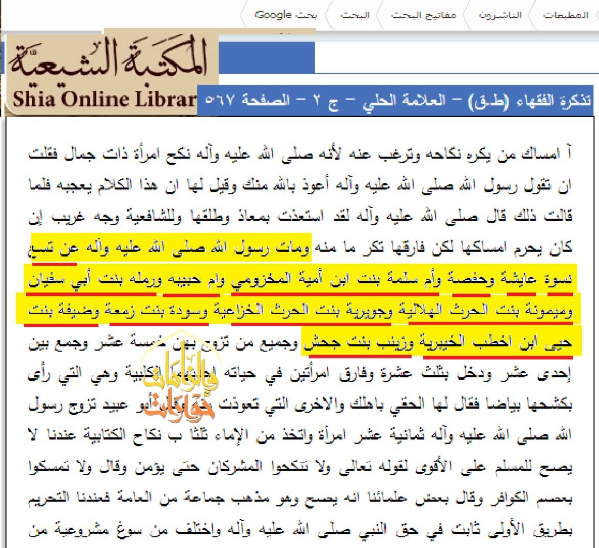 ويقول علامتهم الحلي في كتاب تذكرة الفقهاء ج2 ص567:
