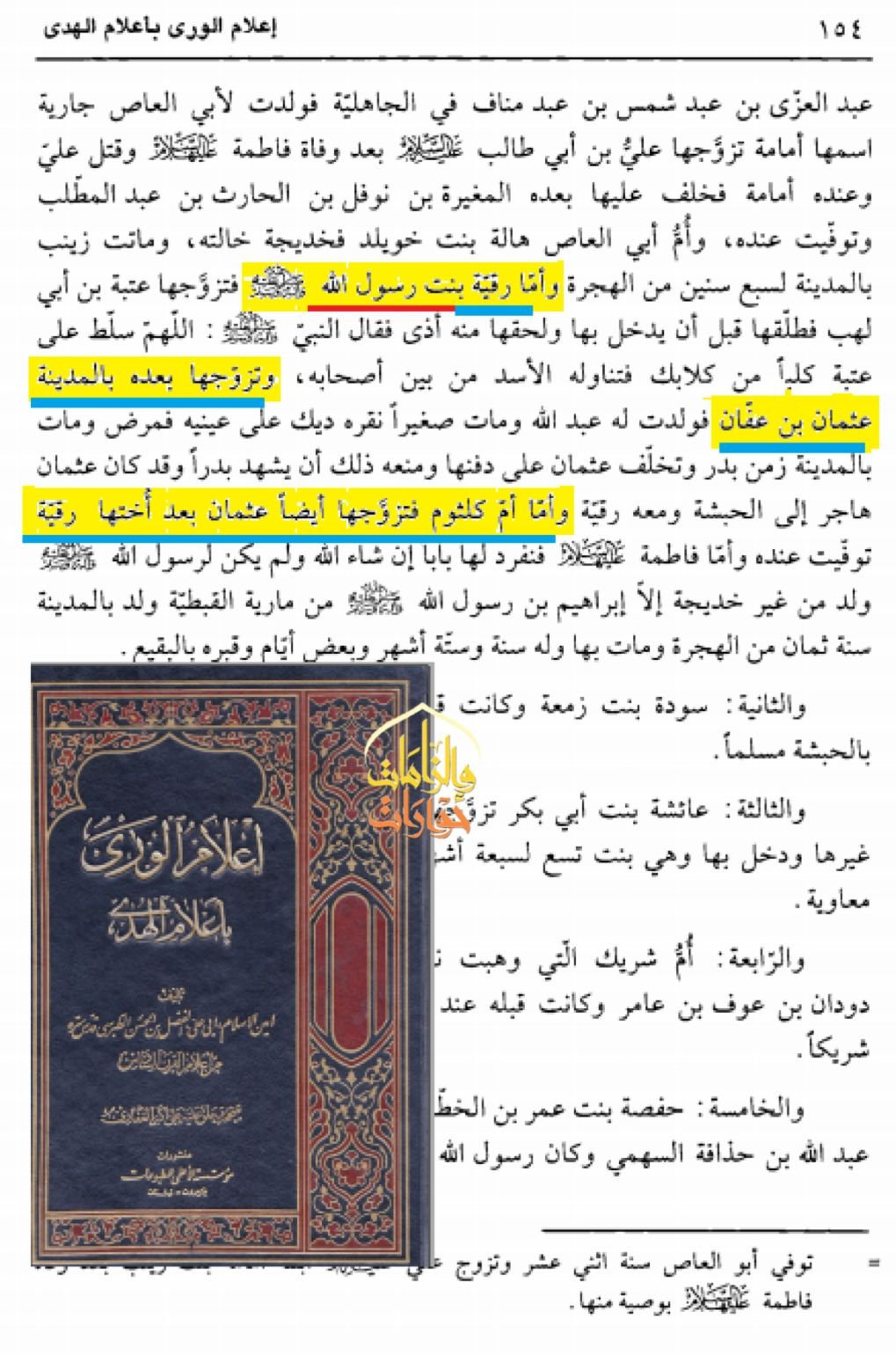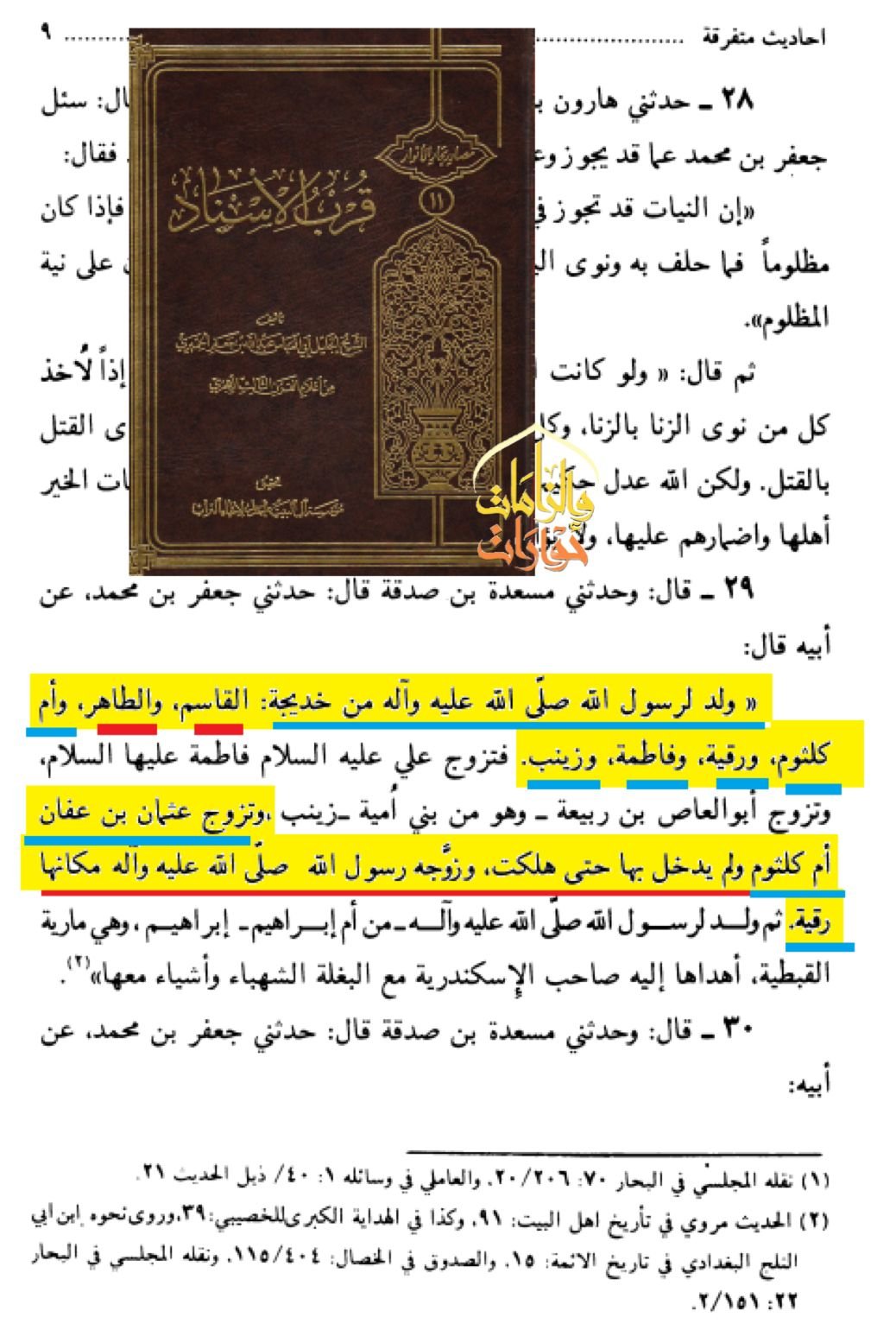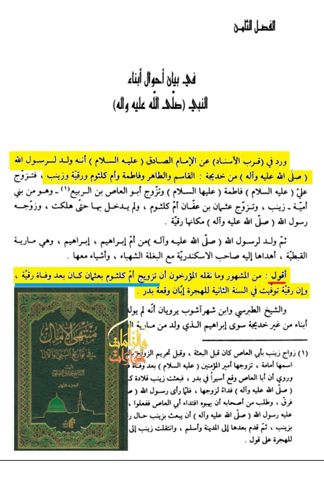 إثبات بنات النبي صلى الله عليه أخوات فاطمة