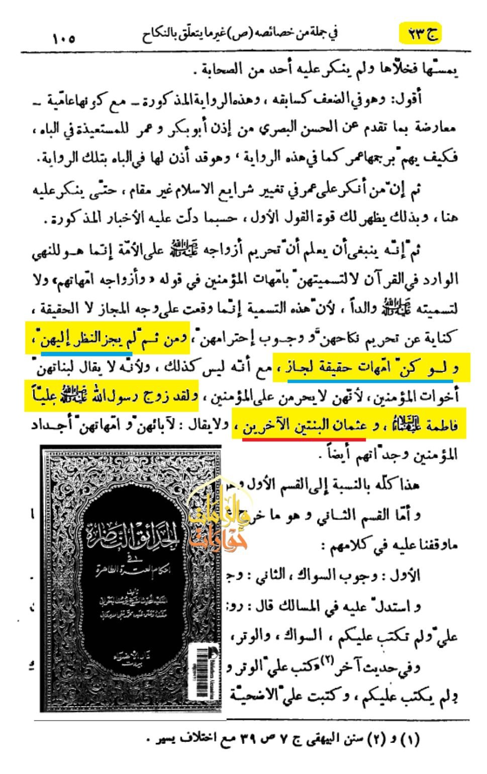 وإليك تصريحات علمائهم في إثبات بنوة بناته له صلى الله عليه وسلم لا كونهن ربائب كما زعم بعضهم.