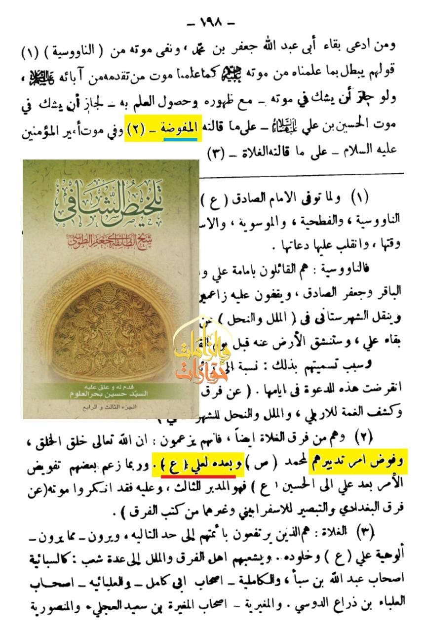 ويقول شيخهم الطوسي في كتاب تلخيص الشافي ج4 ص198: