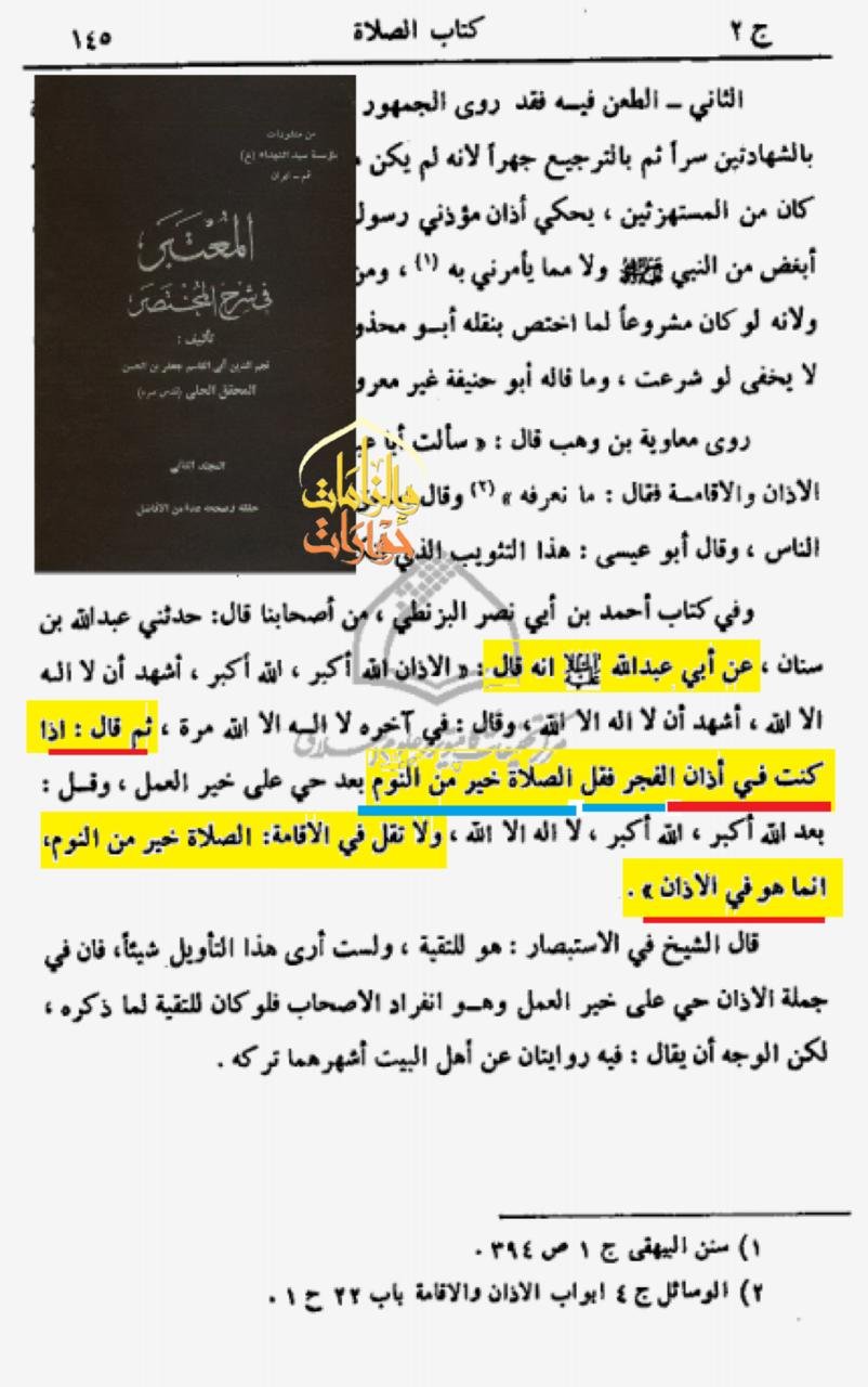 إثبات سُنِّيَّة التثويب في الفجر وبدعِيَّة الشهادة الثالثة