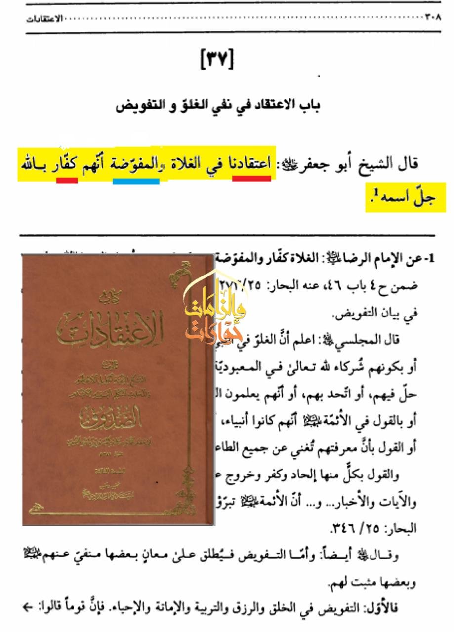 ويقول شيخهم الصدوق في كتاب الإعتقادات ج1 ص97: