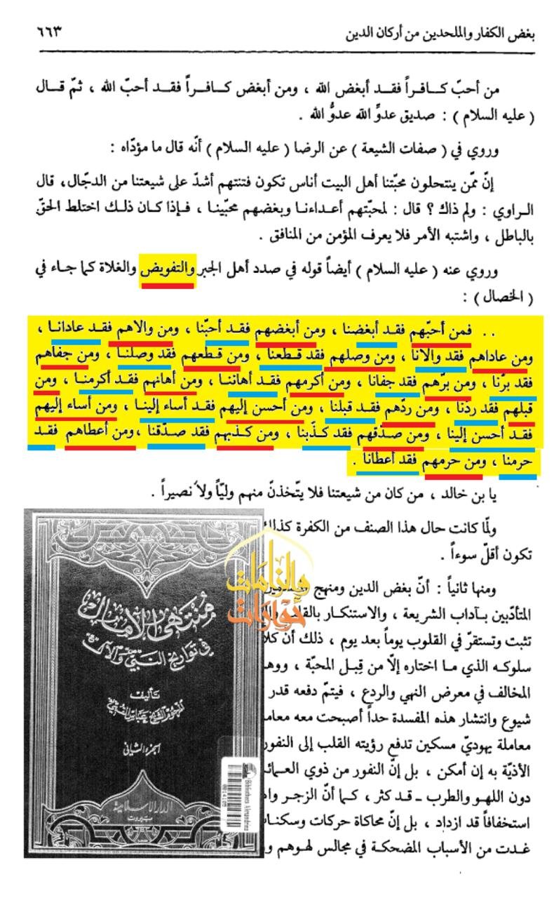 فالشيعة الآن هم أتباع المفوضة والغلاة الذين لعنهم أهل البيت ومع اعترافهم بأن هذا مخالف لدين أهل البيت الا انهم يشرعنونه ويسوغون العمل بما يخالف دين أهل البيت ثم يزعمون أنهم منهم ..! وأهل البيت من التشيع براء .