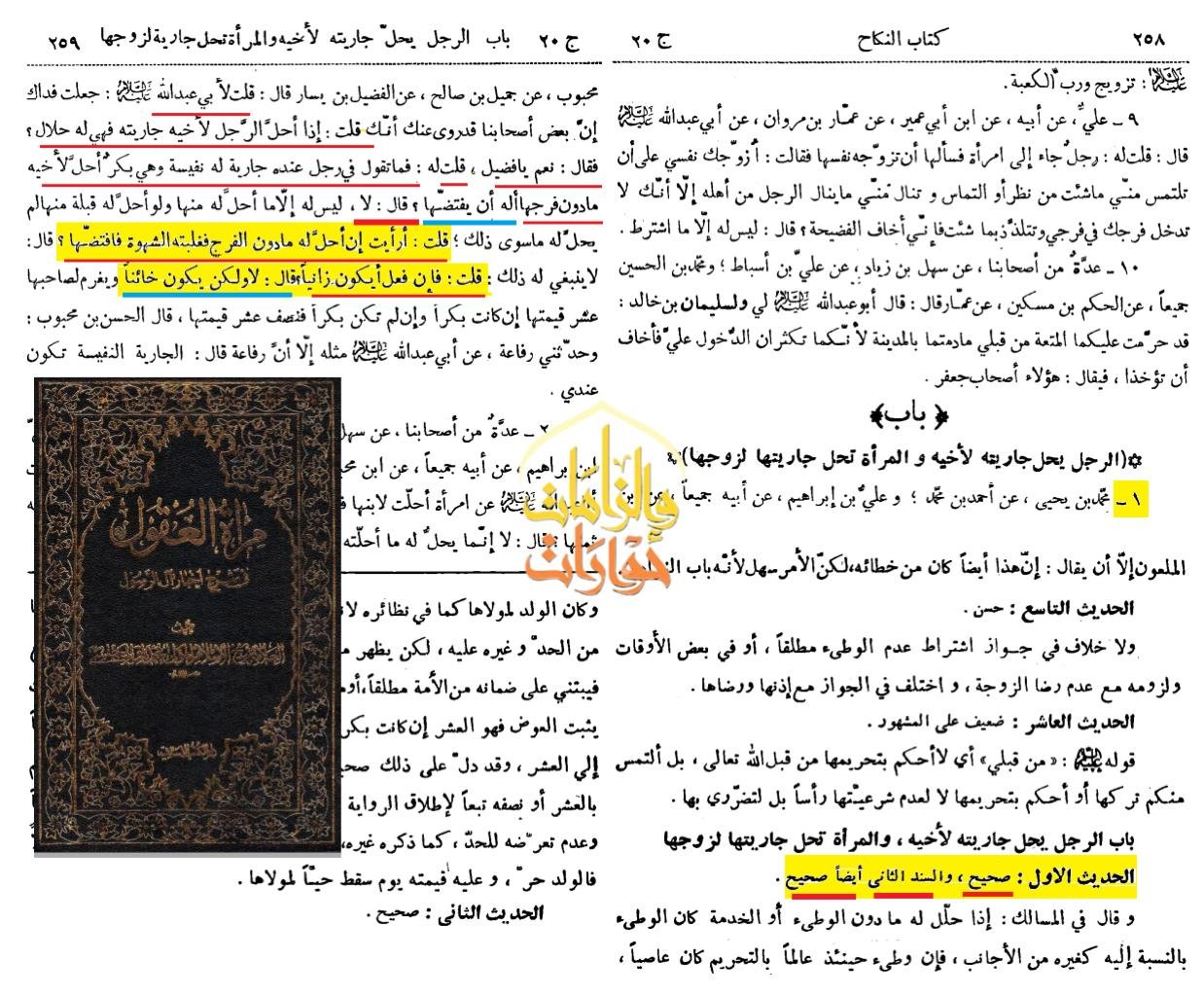 قال علامتهم المجلسى فى كتاب مرأة العقول ج20 ص258: