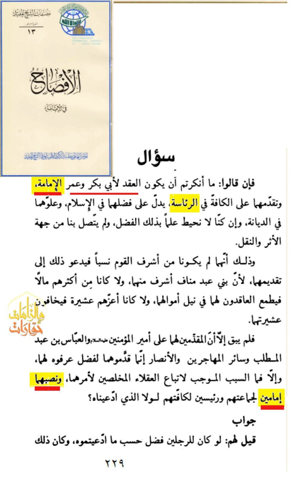 اسم الکتاب : الإفصاح في الإمامة المؤلف : الشيخ المفيد الجزء : 1 صفحة : 229