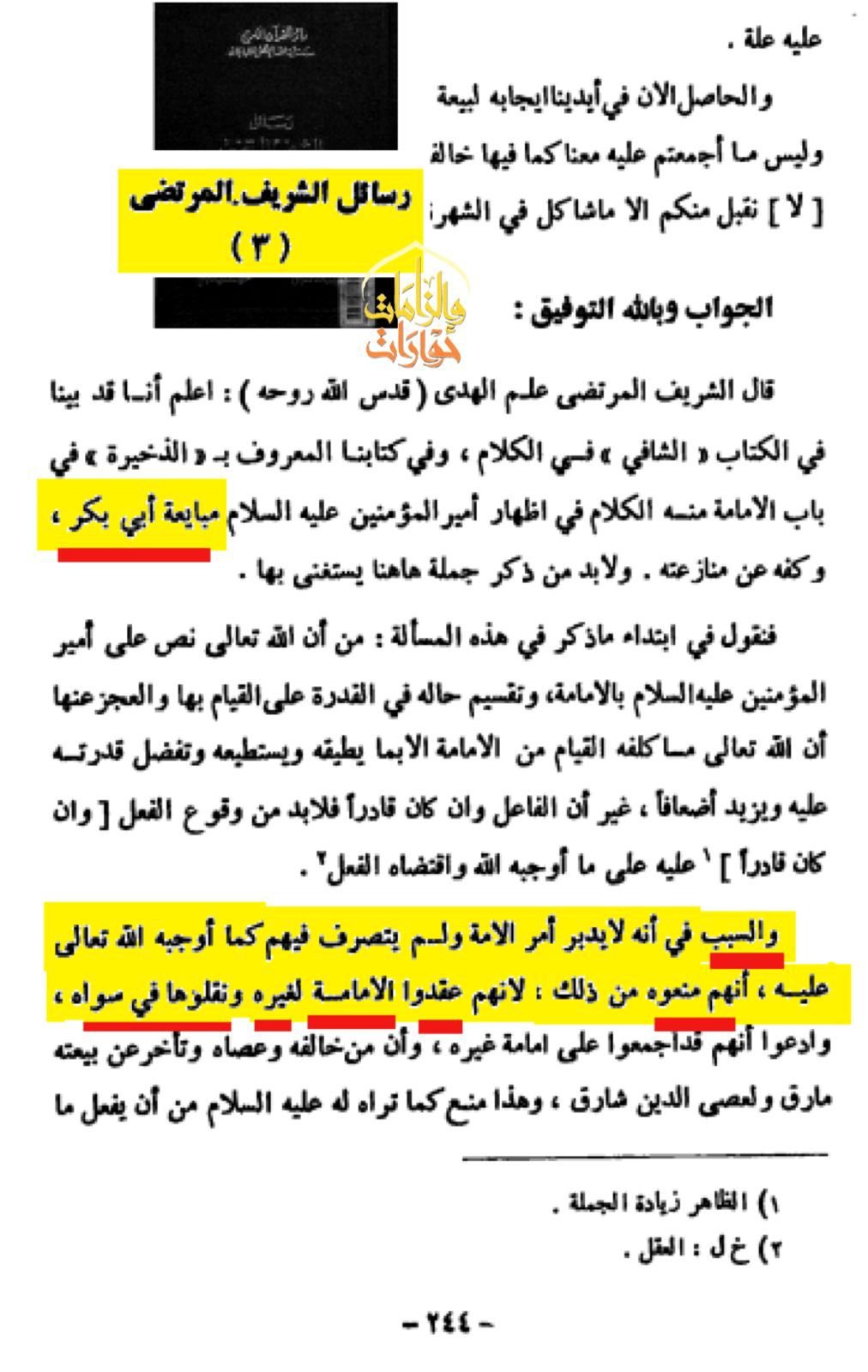ويقول شيخهم الشريف المرتضي في كتاب رسائل الريف المرتضي ج3 ص244: