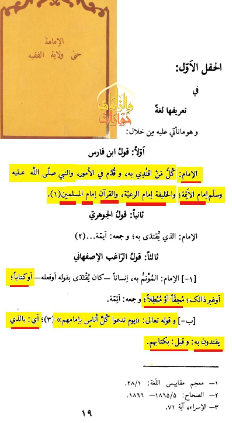 اسم الکتاب : الإمامة حتى ولاية الفقيه المؤلف : عبدالحسين محمد علي بقّال الجزء : 1 صفحة : 19