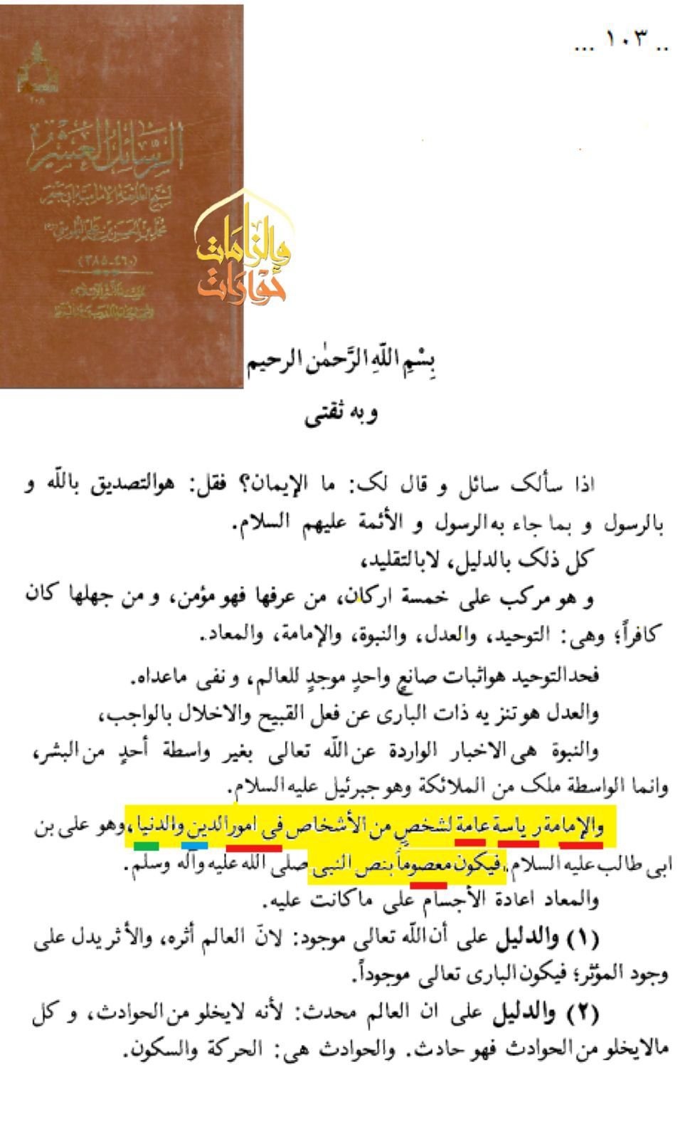 اسم الکتاب : الرسائل العشر المؤلف : الشيخ الطوسي الجزء : 1 صفحة : 103