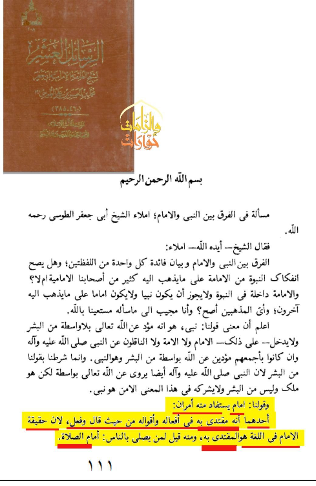 اسم الکتاب : الرسائل العشر المؤلف : الشيخ الطوسي الجزء : 1 صفحة : 111