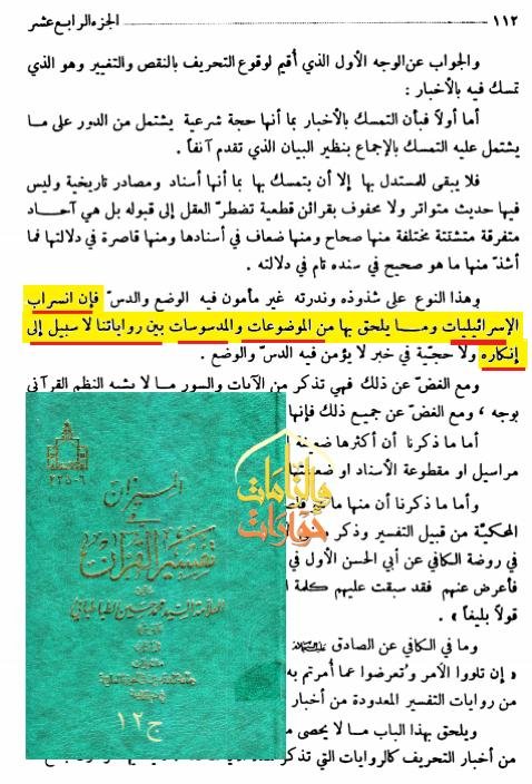 ويقول شيخهم الطباطبائي في كتاب الميزان في تفسير القران ج 12 ص112: