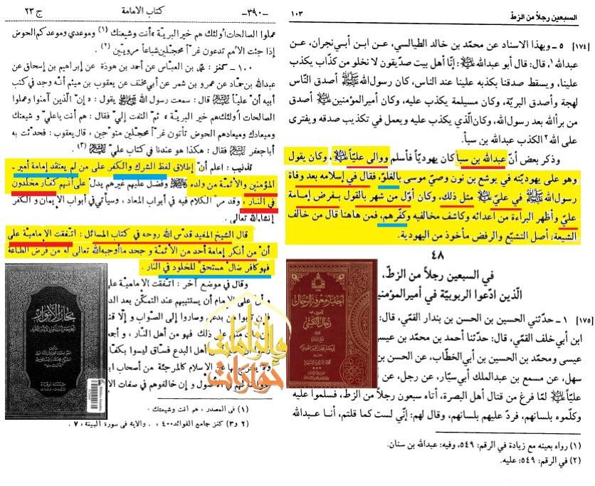 ويقول علامتهم المجلسي في كتاب بحار الأنوار ج33 ص566,567,568,569: