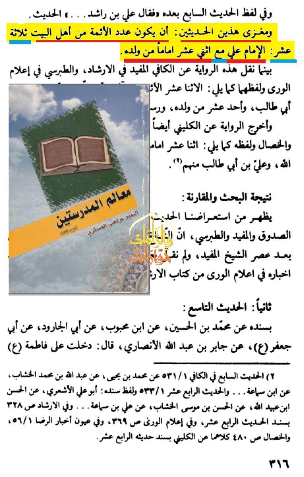 ويقول شيخهم العسكري في كتاب معالم المدرستين ج3 ص328: