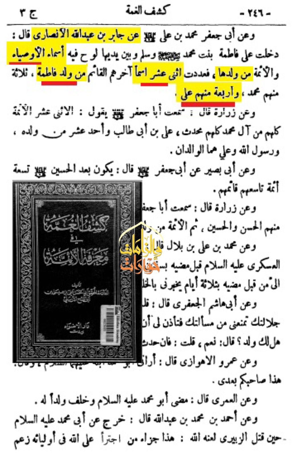 ويقول شيخهم الإربلي في كتاب كشف الغمة ج3 ص246: