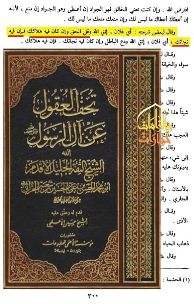 ويقول شيخهم الحراني في كتاب تحف العقول ج1 ص408: