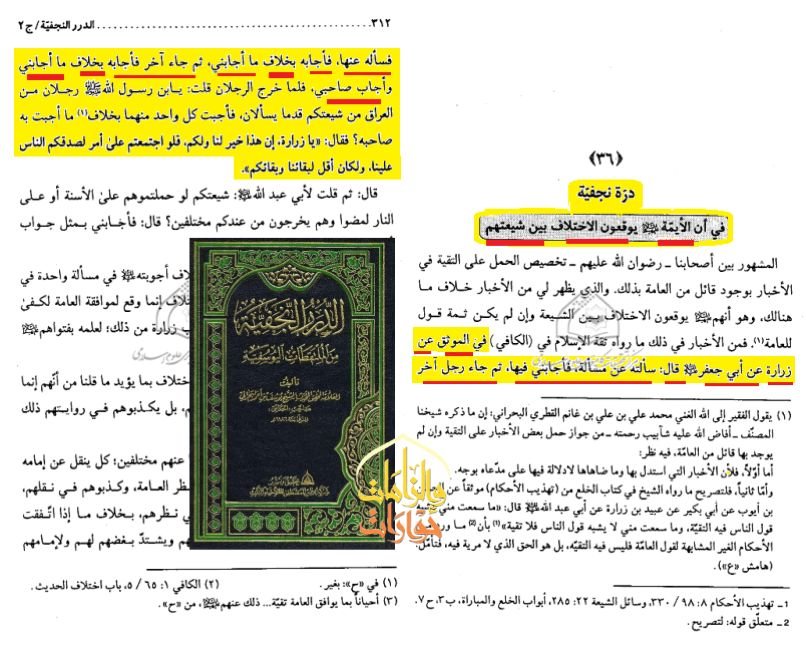ويقول يوسف البحراني تحت عنوان:” درّة نجفيّة في أن الأئمّة : يوقعون الاختلاف بين شيعتهم