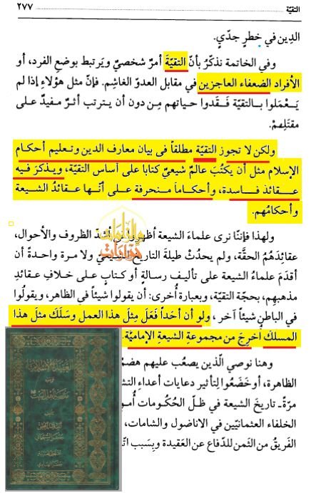 ولكن لا تجوز التقيّة مطلقاً في بيان معارف الدين وتعليم أحكام الاِسلام مثل أن يكتُبَ عالمٌ شيعيٌ كتاباً على أساس التقيّة، ويذكرَ فيه عقائدَ فاسدة، وأحكاماً منحرفة على أنّها عقائدُ الشيعة وأحكامُهم.