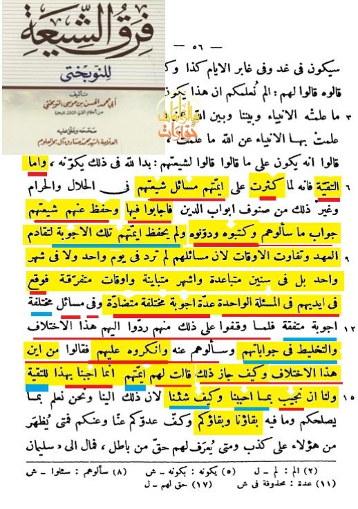 يقول شيخهم النوبختي في كتاب فرق الشيعة ج1 ص65: