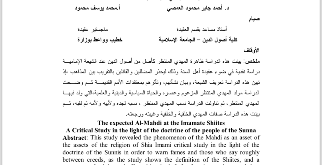 كتب الرد على الشيعة المهدي المنتظر عند الشيعة الإمامية دراسة نقدية في ضوء عقيدة أهل السنة أحمد جابر محمود العمصي بواسطة حوارت وإالزامات آخر تحديث سبتمبر 25, 2024 0 شارك FacebookTwitterGoogle+ReddItWhatsAppPinterestالبريد الإلكتروني المهدي المنتظر عند الشيعة الإمامية دراسة نقدية في ضوء عقيدة أهل السنة أحمد جابر محمود العمصي لتحميل الكتاب اضغط هنا قناة اليوتيوب 0 شارك FacebookTwitterGoogle+ReddItWhatsAppPinterestالبريد الإلكتروني
