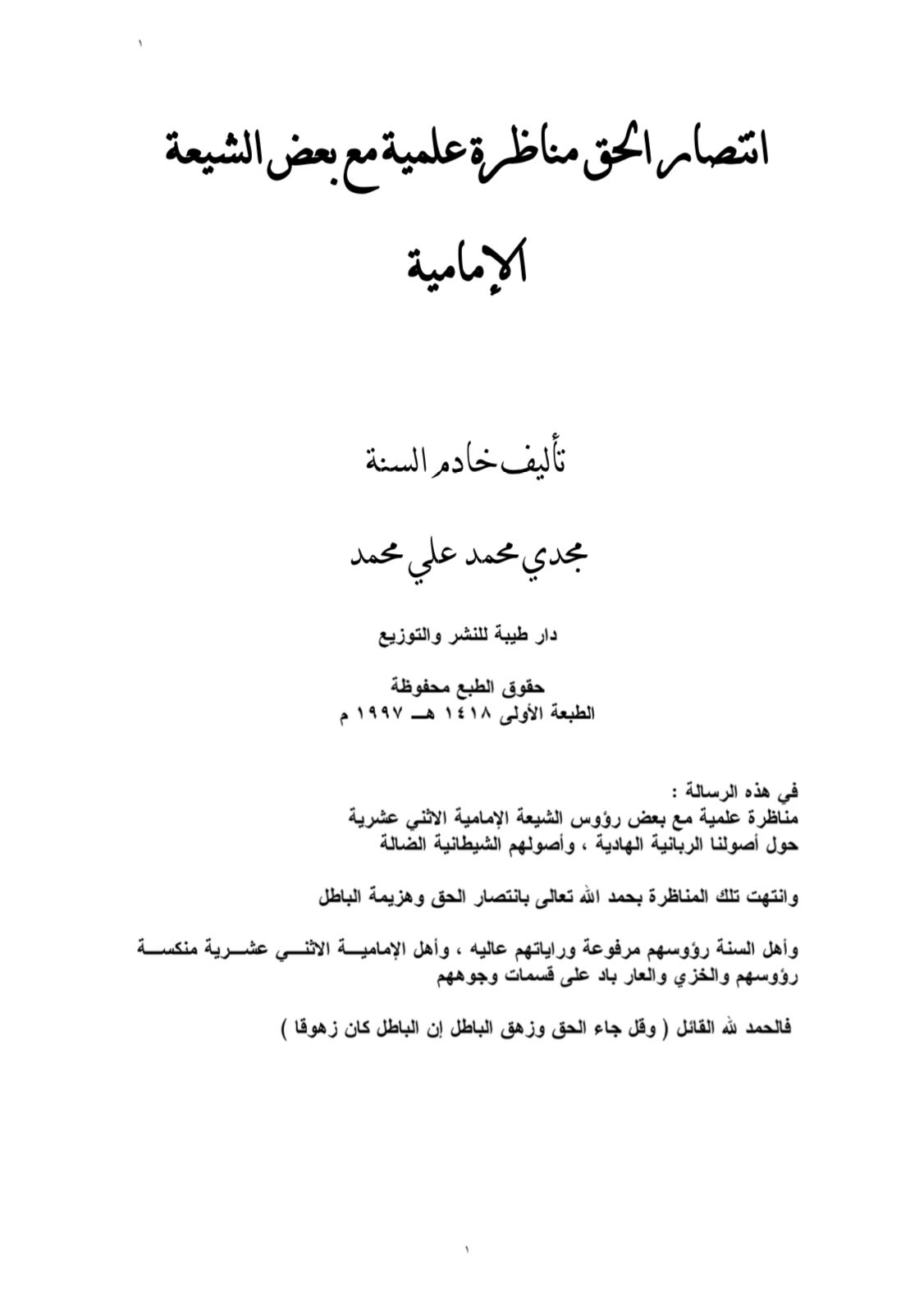Screenshot كتب الرد على الشيعة انتصار الحق مناظرة علمية مع بعض الشيعة الإمامية مجدي محمد علي محمد بواسطة حوارت وإالزامات آخر تحديث أكتوبر 13, 2024 0 شارك FacebookTwitterGoogle+ReddItWhatsAppPinterestالبريد الإلكتروني انتصار الحق مناظرة علمية مع بعض الشيعة الإمامية مجدي محمد علي محمد لتحميل الكتاب اضغط هنا قناة اليوتيوب 0 شارك FacebookTwitterGoogle+ReddItWhatsAppPinterestالبريد الإلكتروني
