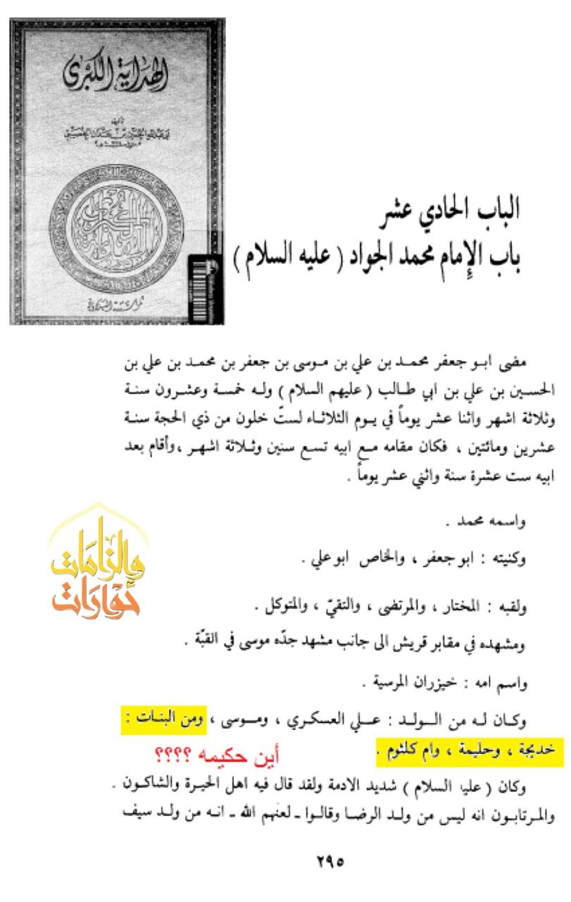 عن حكيمة بنت أبي الحسن موسى (عليه السلام) قالت: كتبت لمّا علقت امّ أبي جعفر (عليه السلام) به: خادمتك قد علقت، فكتب إليّ علقت يوم كذا من شهر كذا