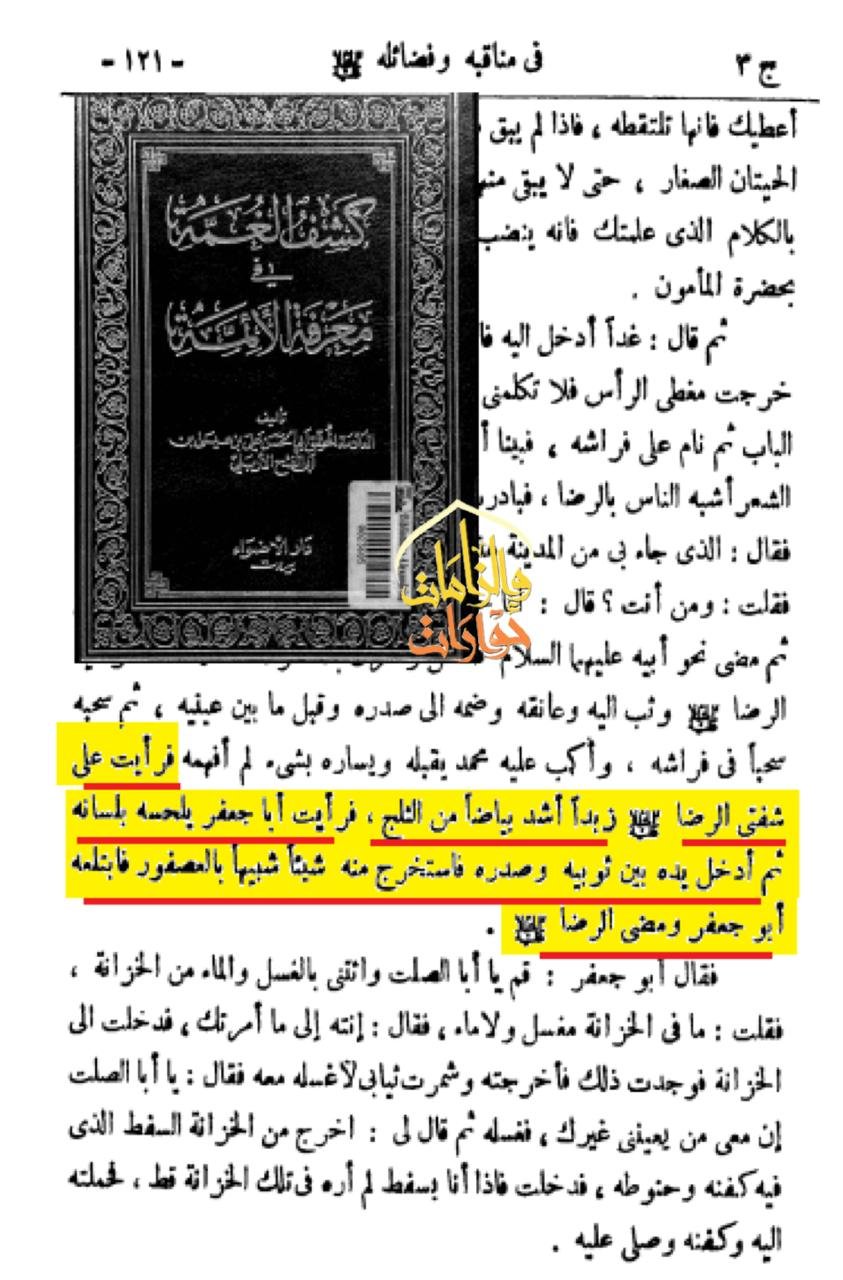 ويقول الإربلي في كتاب كشف الغمة ج3:
