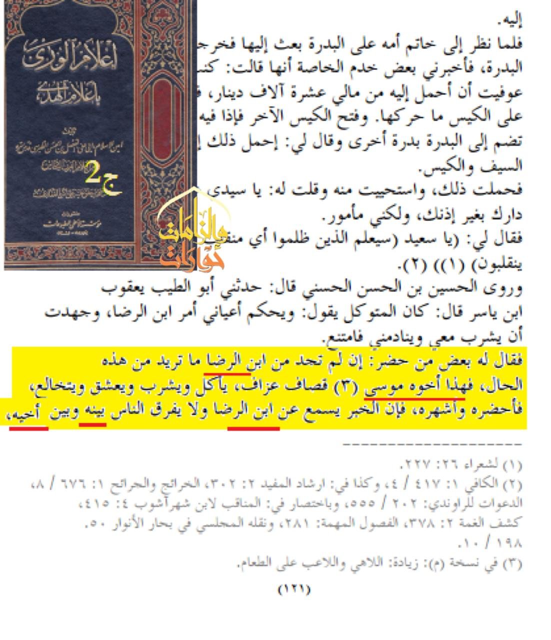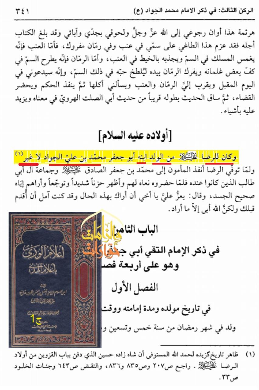 ويقول شيخهم الطبرسي في كتاب إعلام الورى بأعلام الهدى: