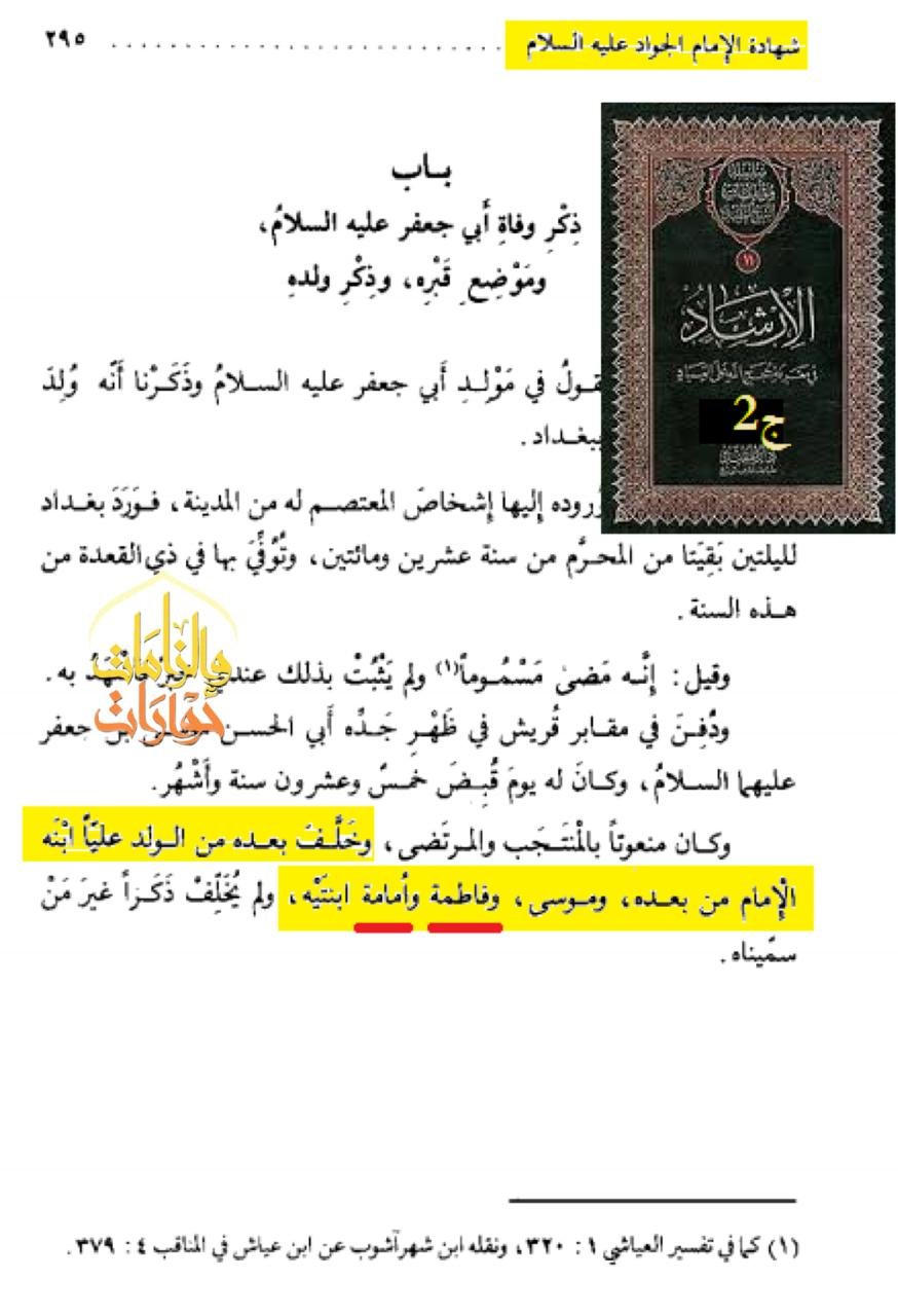 ويقول شيخهم المفيد في كتاب الإرشاد ج2: