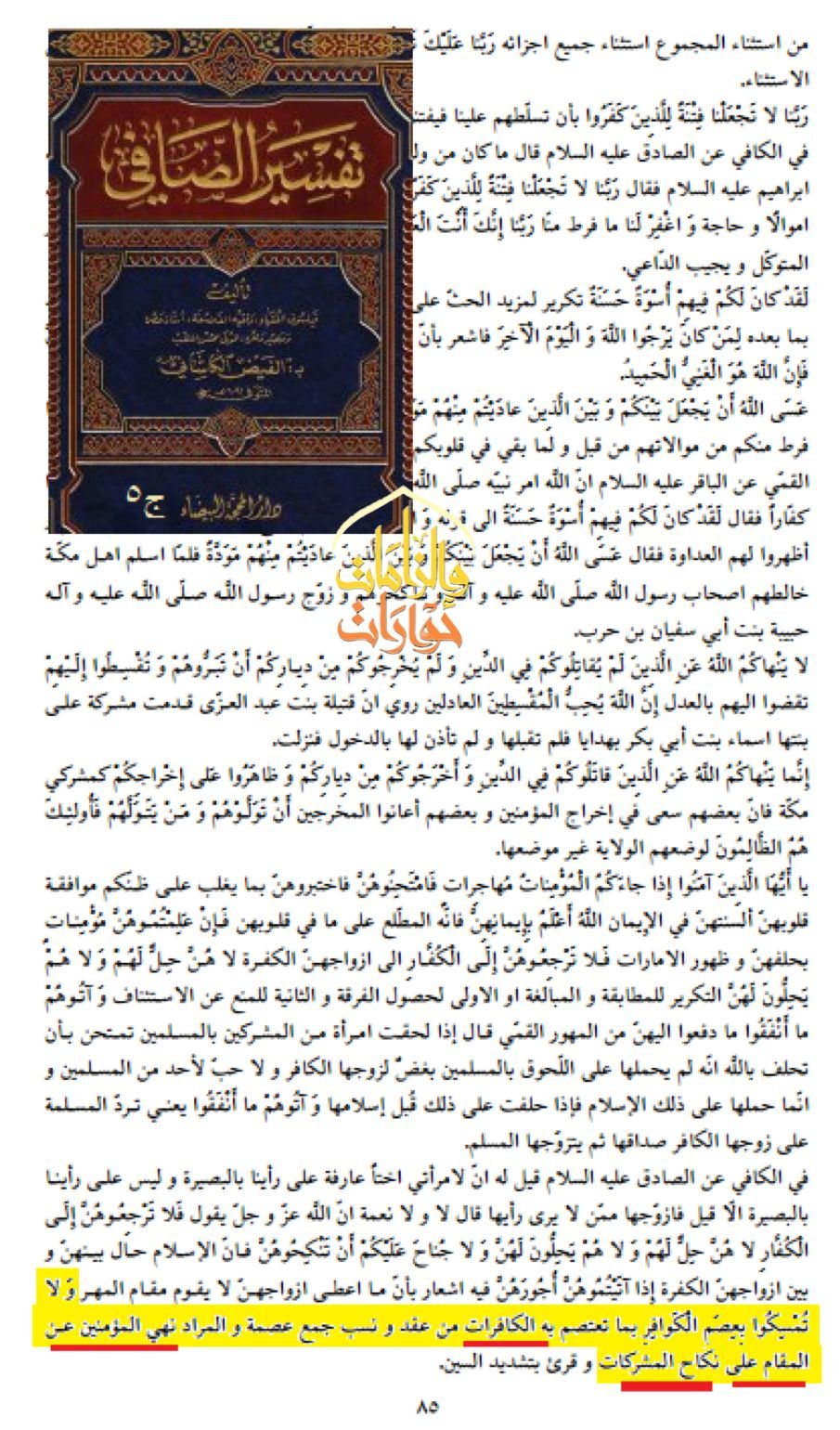 يقول شيخهم الفيض الكاشاني في كتاب تفسير الصافي ج7 ص171: