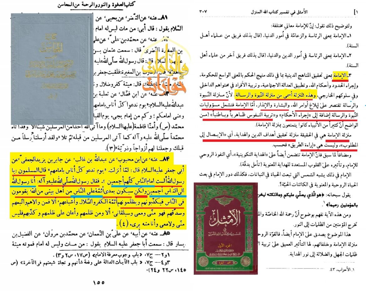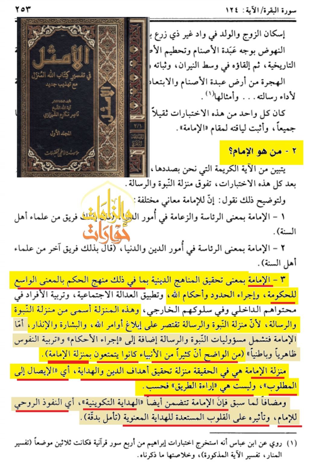 ويقول شيخهم الشيرازي في كتاب الأمثل في تفسير كتاب الله :