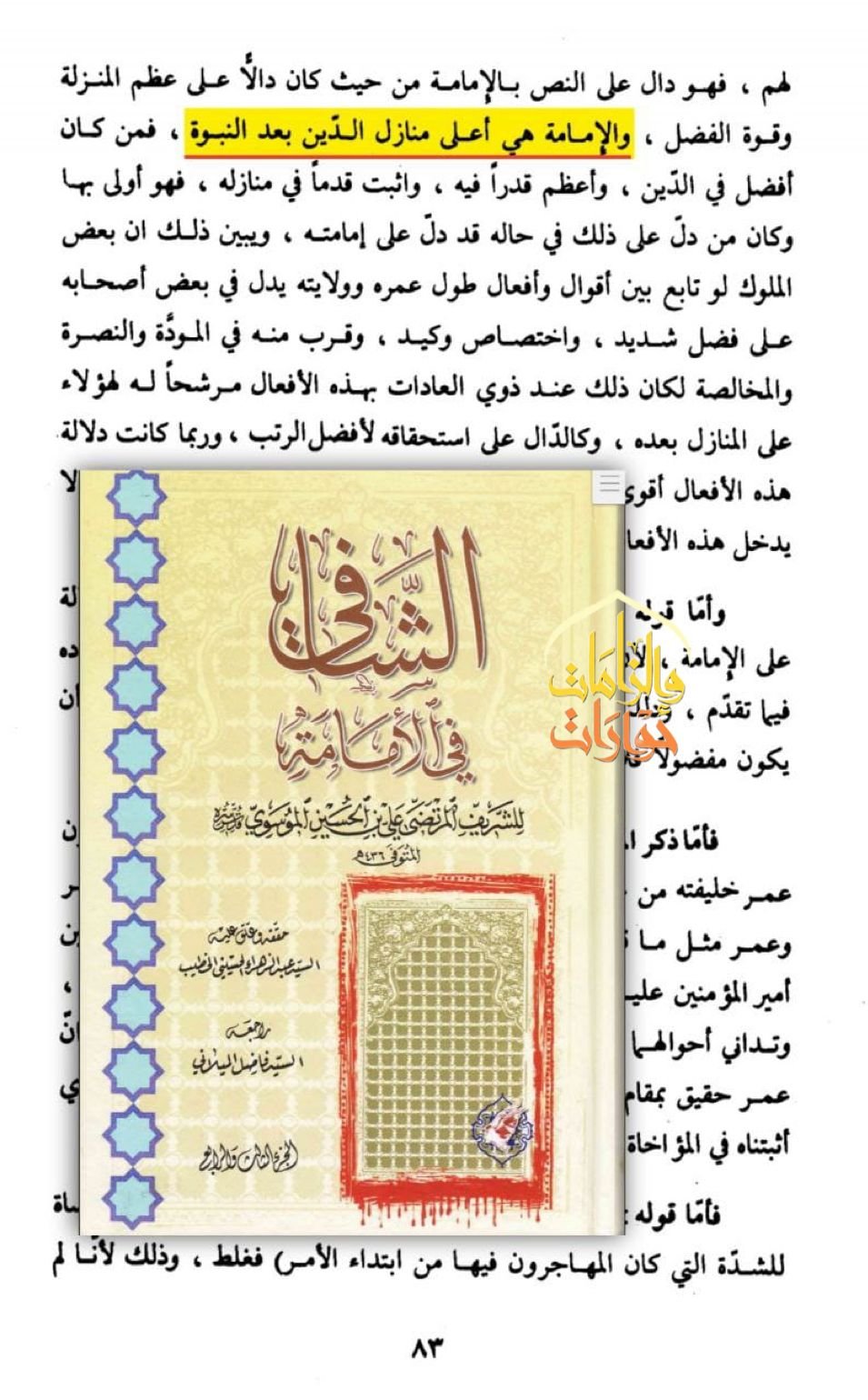 والإمامة هي أعلى منازل الدين بعد النبوة