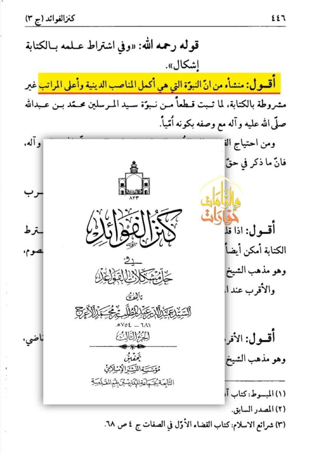 ويقول شيخهم الحسيني العميدي في كتاب كنز الفوائد في حل مشكلات القواعد ج3 ص446: