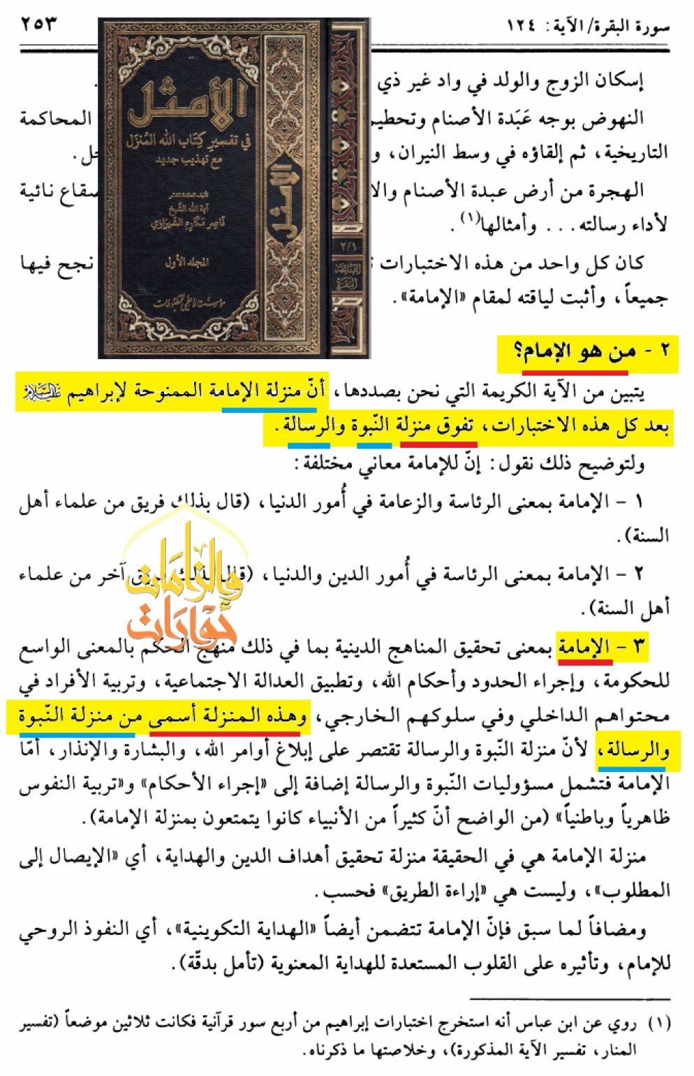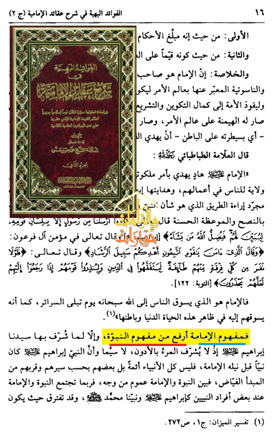 فمقام الإمامة إذن فوق مقام النبوّة.