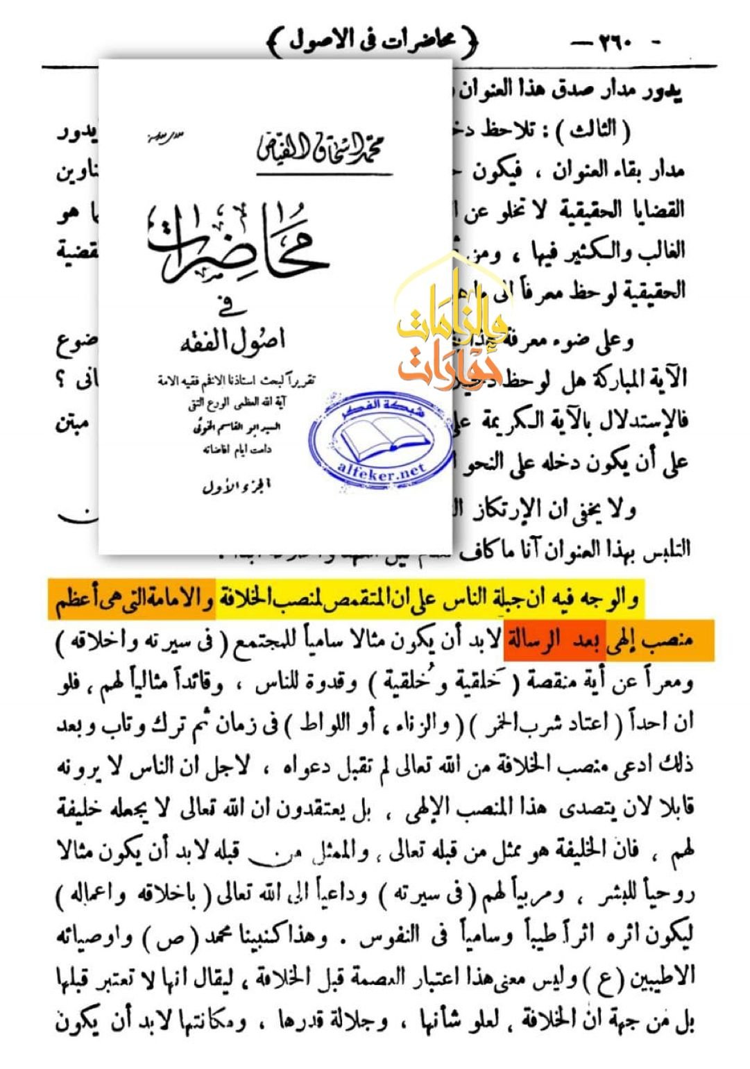 ويقول شيخهم الحائري في كتاب الإمامة وقيادة المجتمع: