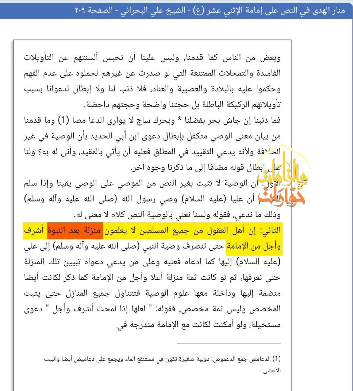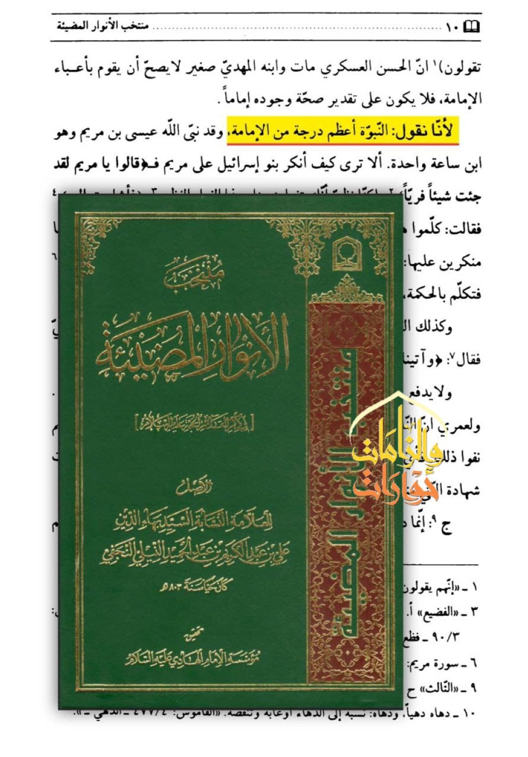 أَغْلَبُ الشِّيعةِ في هذا الزَّمانِ يَعْتَقِدُونَ بأنَّ الإمامةَ أعلَى مَنزِلةً مِنَ النُّبُوَّةِ، وإليكَ النُّصوصَ في ذلك