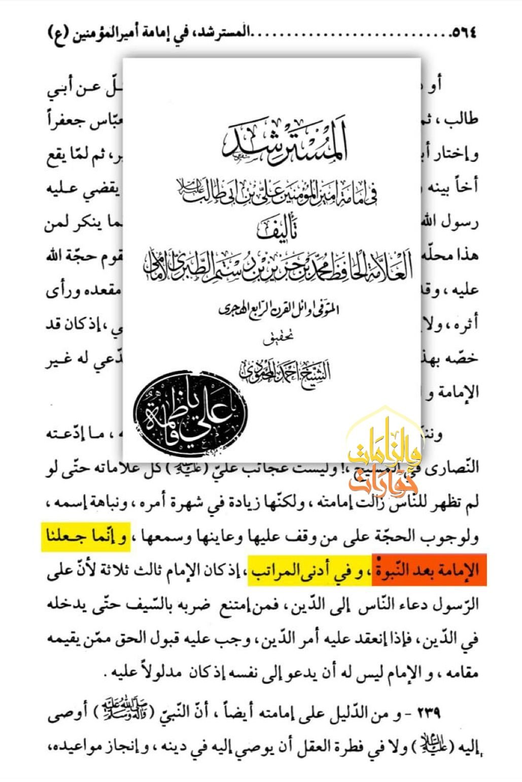 ويقول شيخهم الطبري في كتاب المسترشد في إمامة أمير المؤمنين علي بن أبي طالب ج1 ص564:
