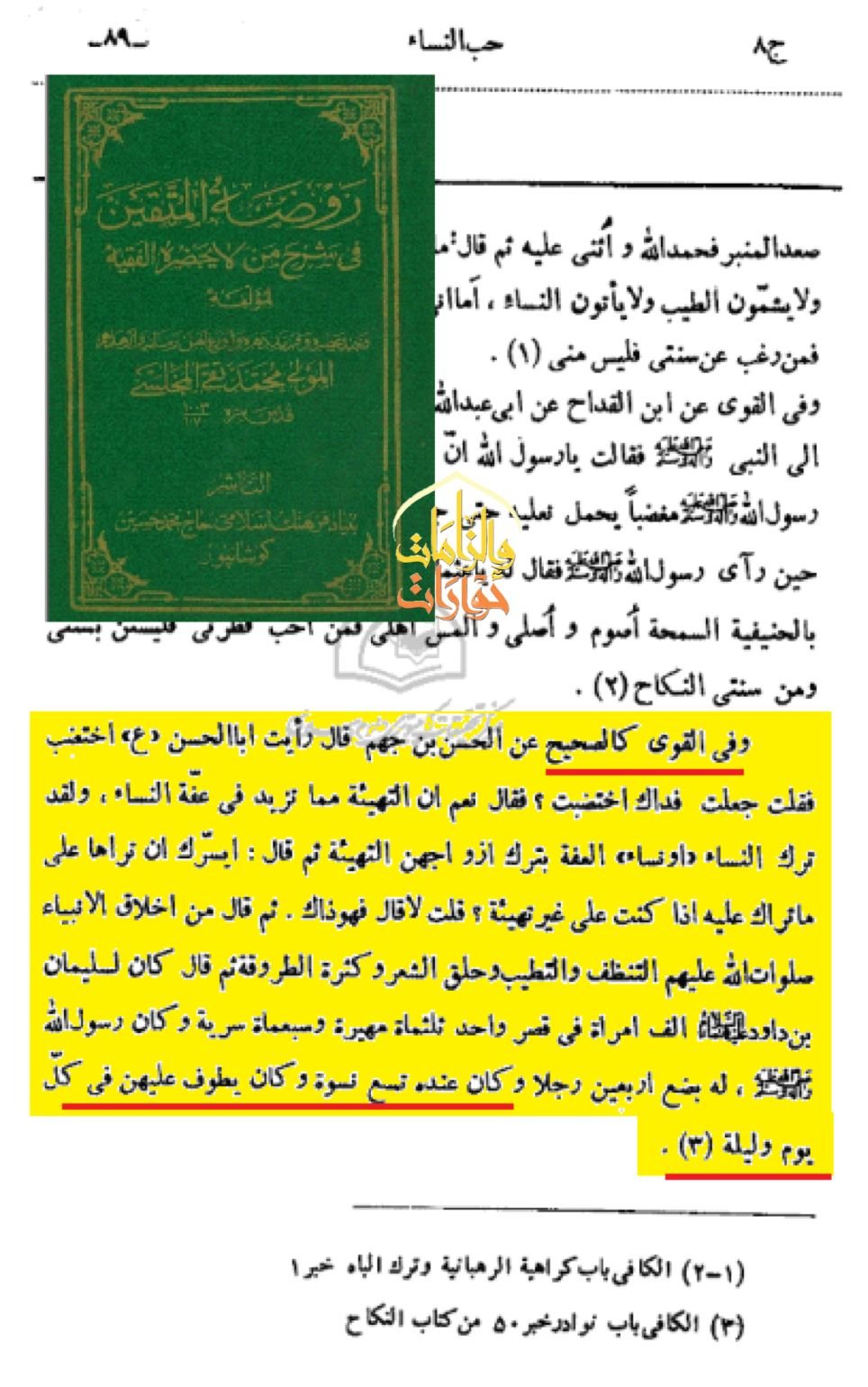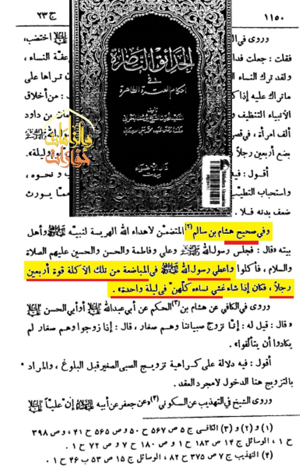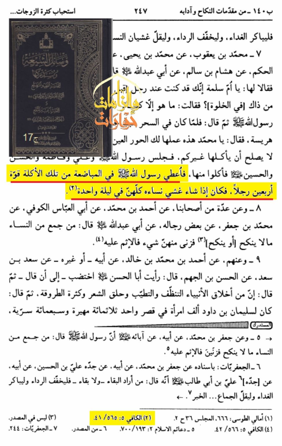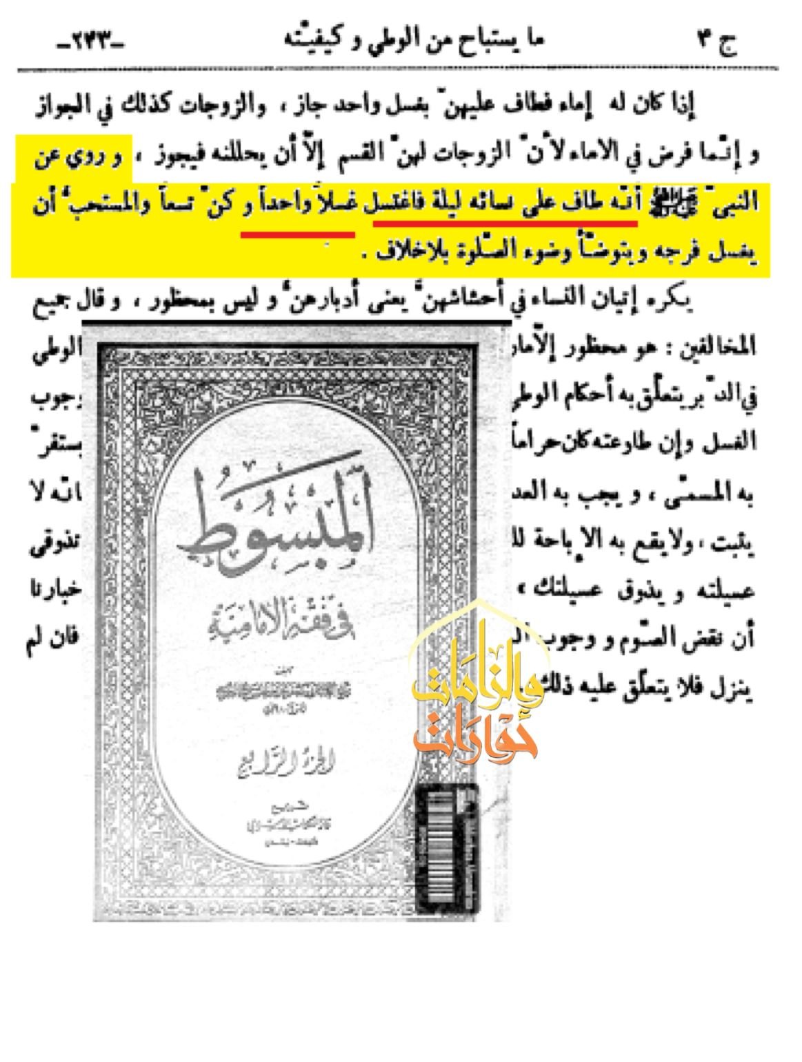 يستنكرُ الشِّيعةُ أنَّ النَّبيَّ صلَّى اللهُ عليه وسلَّم كان يَطوفُ على نِسائه بغُسلٍ واحدٍ، مع أنَّ هذا قد صَحَّ في كُتُبِهم وصَرَّح به عُلمائهم كثيرًا، وإليك الوثائقَ التي تُثبِتُ ذلك.
