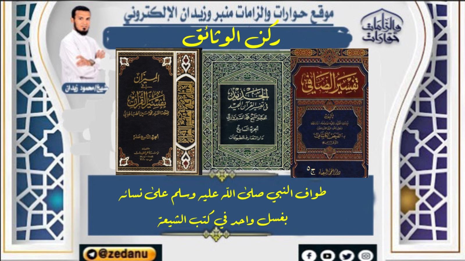 يستنكرُ الشِّيعةُ أنَّ النَّبيَّ صلَّى اللهُ عليه وسلَّم كان يَطوفُ على نِسائه بغُسلٍ واحدٍ، مع أنَّ هذا قد صَحَّ في كُتُبِهم وصَرَّح به عُلمائهم كثيرًا، وإليك الوثائقَ التي تُثبِتُ ذلك.