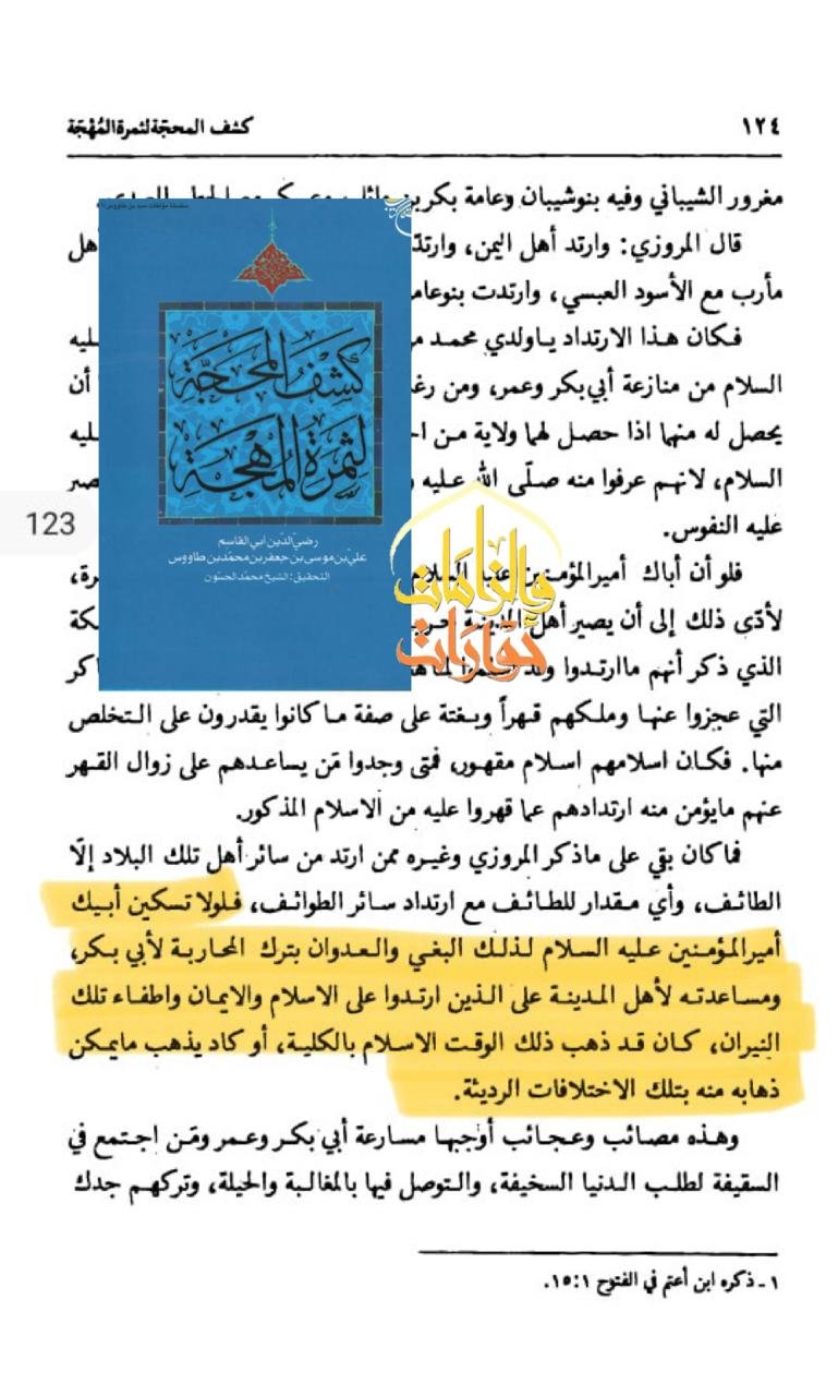 يقول شيخهم بن طاووس فى كتاب كشف المحجة لثمرة المهجة: