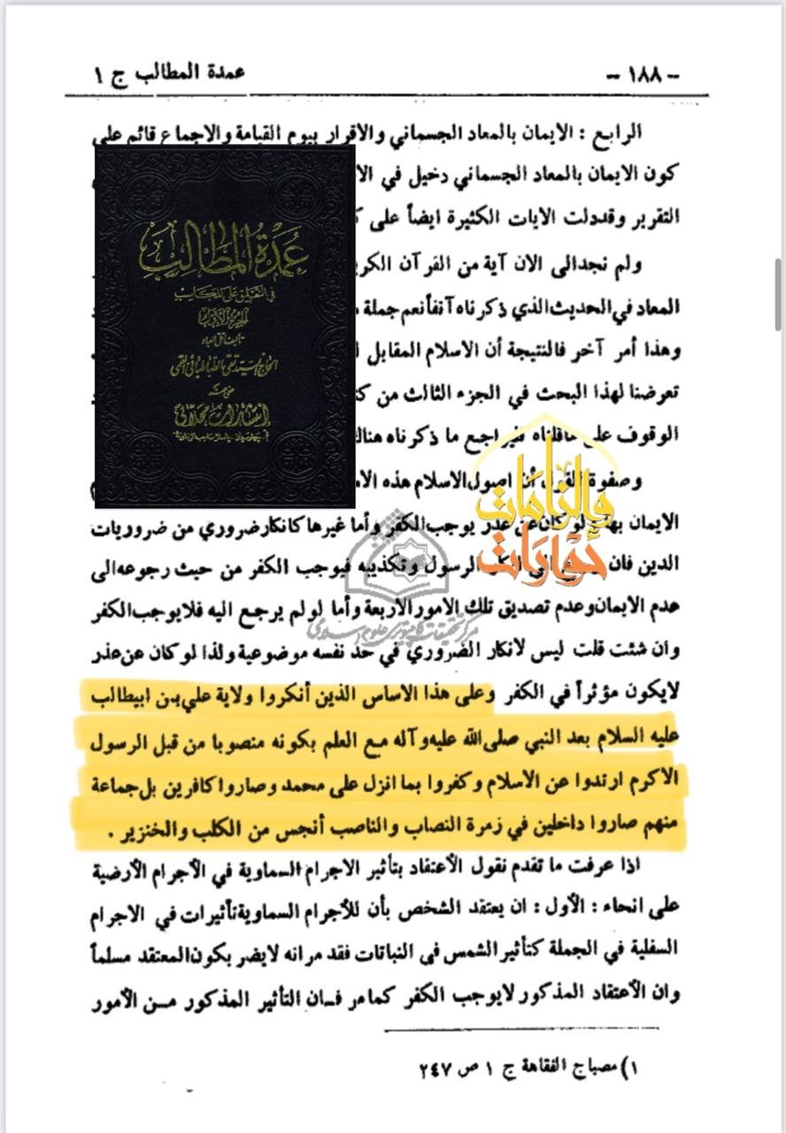 ويقول شيخهم القمي في كتاب عمدة المطالب ج1 ص189: