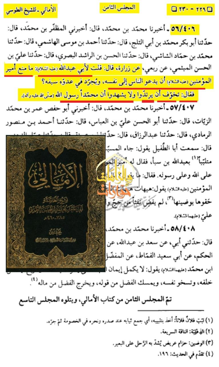 ويقول شيخهم الطوسي في كتاب الامالي: