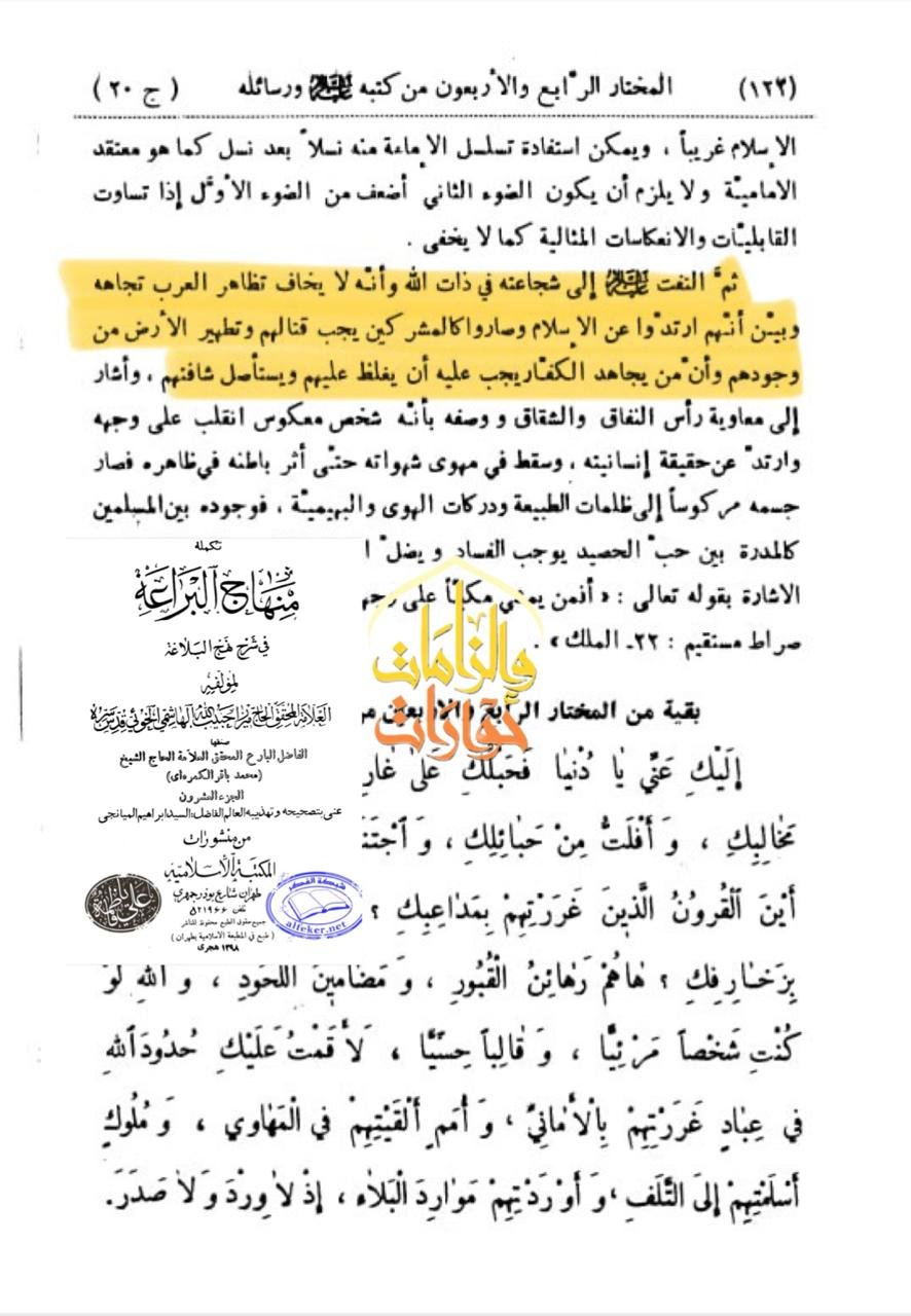 ويقول شيخهم ميرزا في كتاب منهاج البراعم في شرح نهج البلاغة ج20 ص122:
