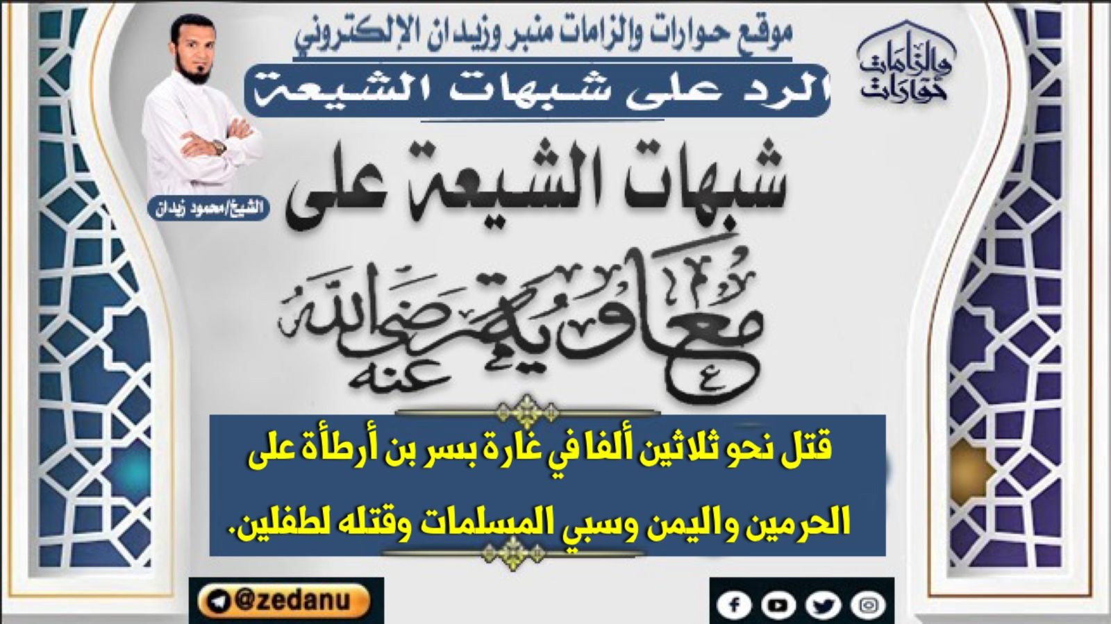 على أن الرواية تنقض كلام الرافضي الذي يزعم أن معاوية يقتل الناس بالشبهة إذ أن المنسوب لبسر بن أرطأة أنه قال في الرواية (يَا أهل الْمَدِينَة، وَاللَّهِ لولا مَا عهد إلي مُعَاوِيَة مَا تركت بِهَا محتلما إلا قتلتُه ثُمَّ بايع أهل الْمَدِينَة) وهذا نص قاطع في أن معاوية امره بعدم قتل أحد، هذا على فرض صحة الرواية وإلا فهي لا تصح كما أسلفنا.