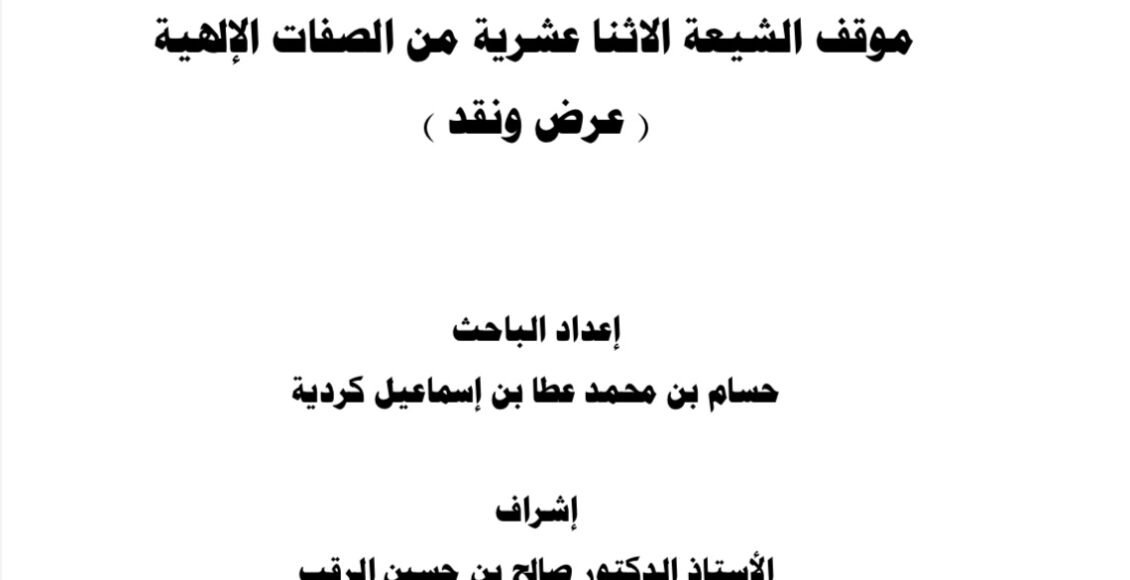 Screenshot كتب الرد على الشيعة موقف الشيعة الاثنا عشرية من الصفات الإلهية بواسطة حوارت وإالزامات في أكتوبر 13, 2024 0 شارك FacebookTwitterGoogle+ReddItWhatsAppPinterestالبريد الإلكتروني موقف الشيعة الاثنا عشرية من الصفات الإلهية لتحميل الكتاب اضغط هنا قناة اليوتيوب 0 شارك FacebookTwitterGoogle+ReddItWhatsAppPinterestالبريد الإلكتروني