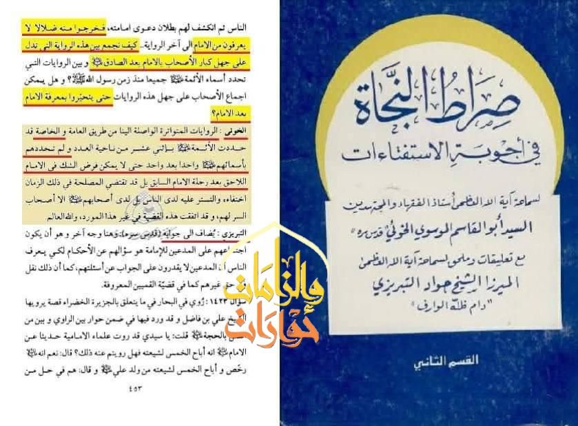 ﺍﻋﺘﺮﺍﻑ ﺍﻟﺨﻮﺋﻲ ﻭ ﺍﻟﺘﺒﺮﻳﺰﻱ ﻣﻦ ﻛﺒﺎﺭ ﻣﺮﺍﺟﻊ ﺍﻟﺸﻴﻌﺔ ﺑﻌﺪﻡ ﻭﺟﻮﺩ ﻧﺺ ﺻﺮﻳﺢ ﻓﻲ ﺃﺳﻤﺎﺀ ﺍﻷﺋﻤﺔ ﺍﻹﺛﻨﻲ ﻋﺸﺮ