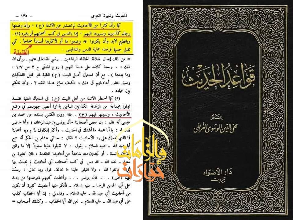 ويقول شيخهم الموسوي في كتاب قواعد الحديث ج1 ص135: