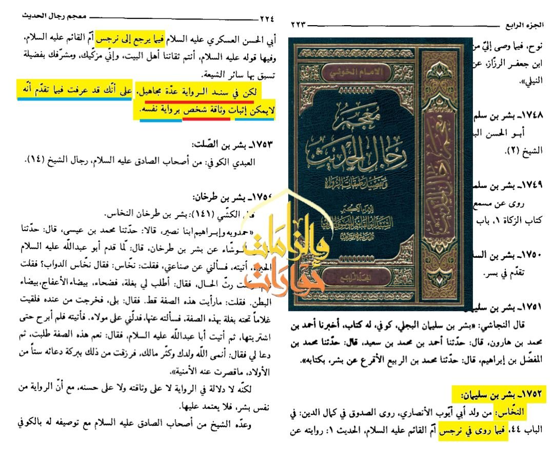 ويقول شيخهم الخوئي في كتاب معجم رجال الحديث ج4 ص223,224: