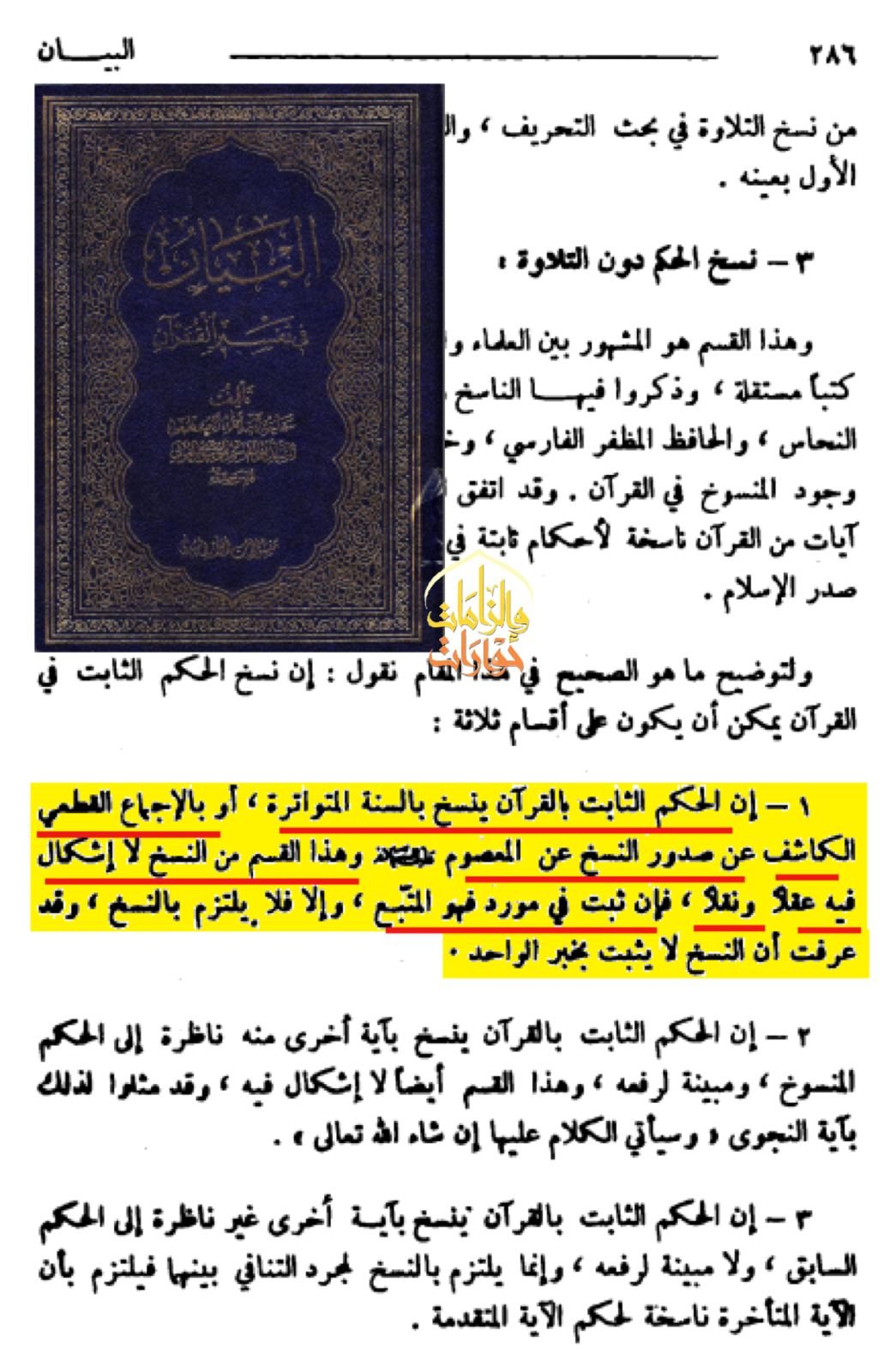 نسخ التلاوة بإجماع الشيعة وتهافت كلام الخوئي