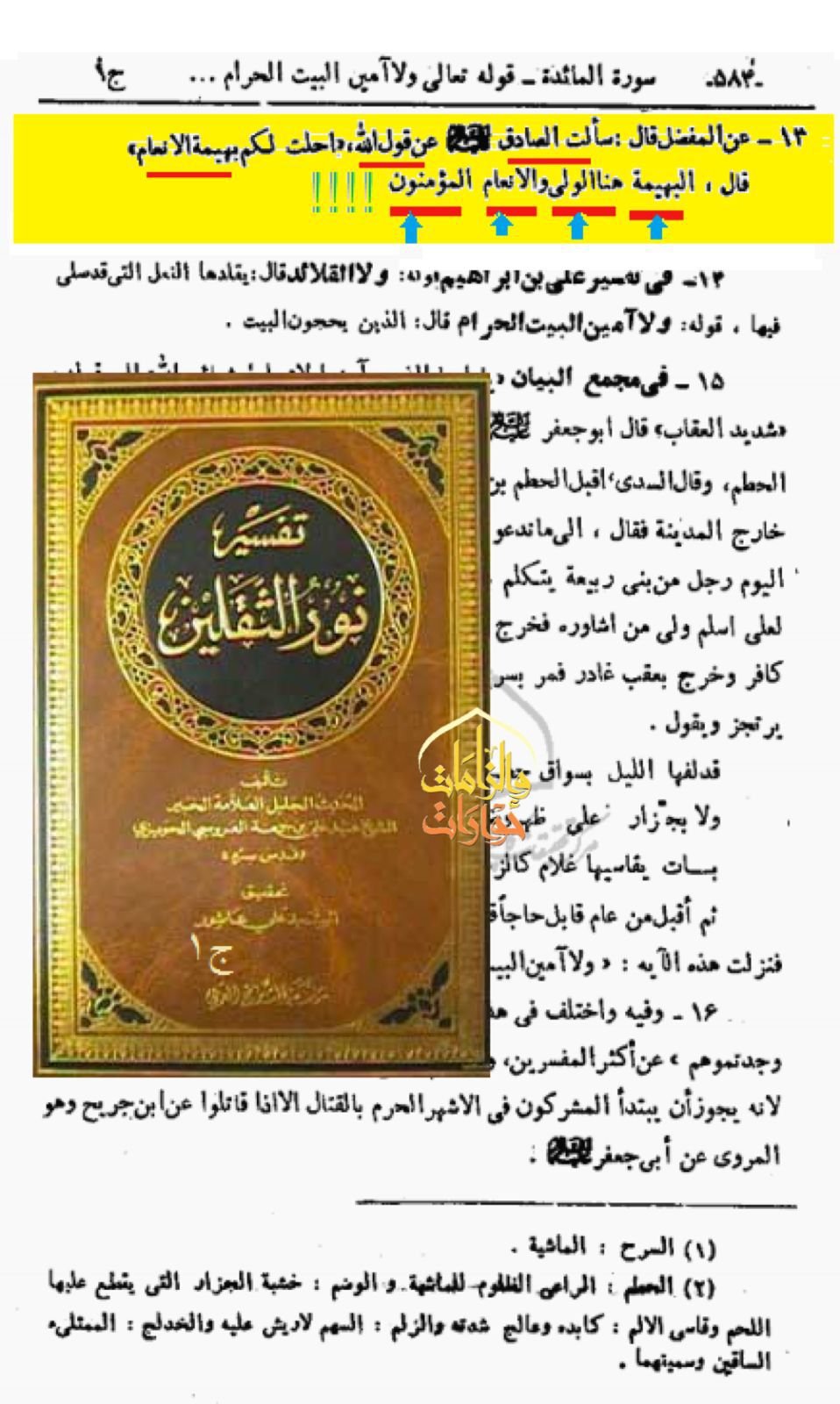 ويقول شيخهم العروسي في كتاب تفسير نور الثقلين ج1 ص583,584:
